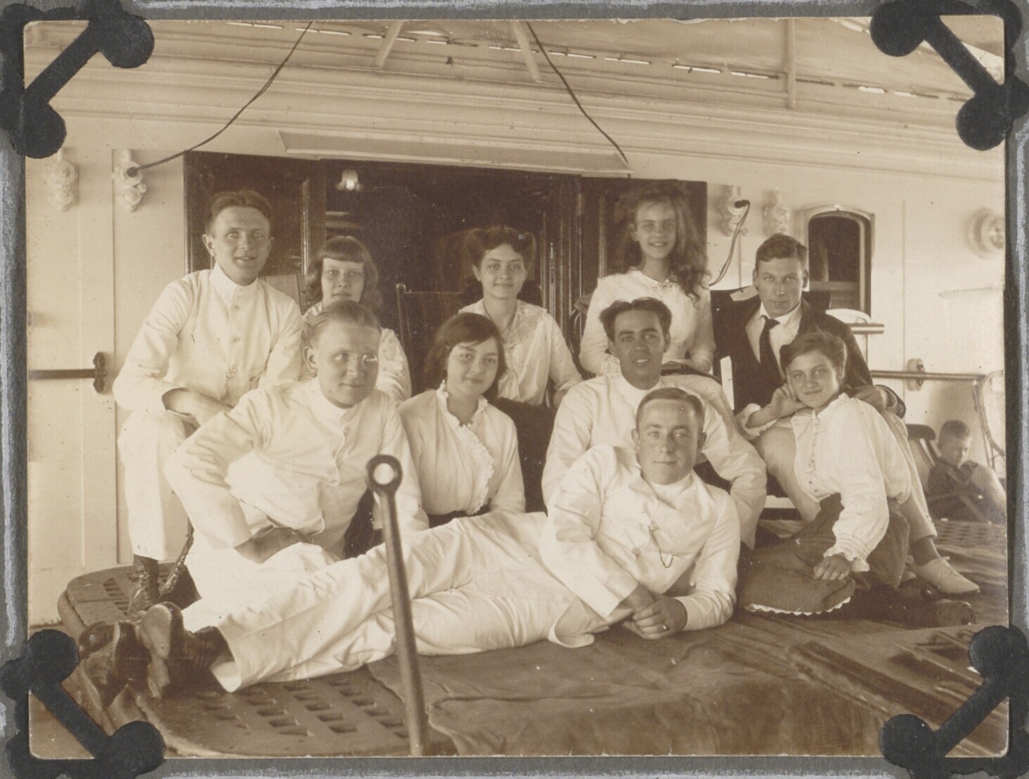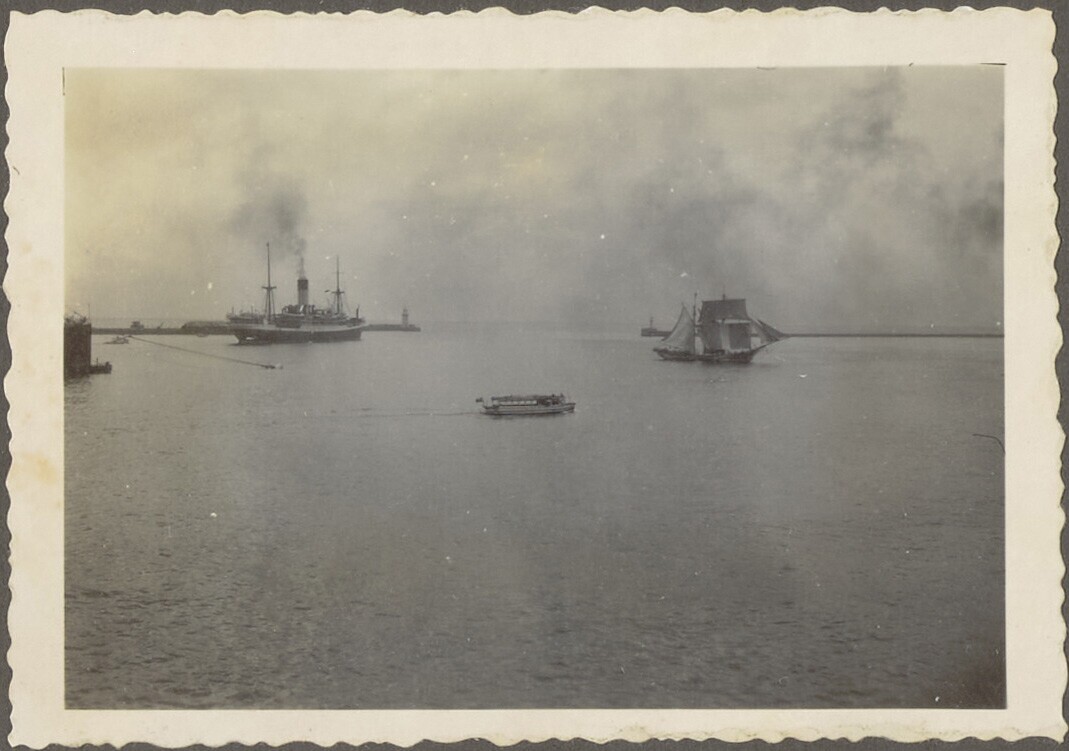 Portret van twee vrouwen aan boord van een schip