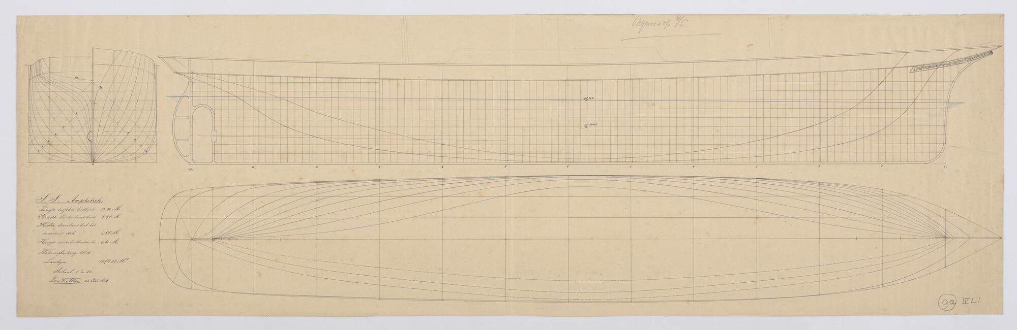 Schroefstoomschip 'Ibis', 1875: lijnenplan, spantenr...