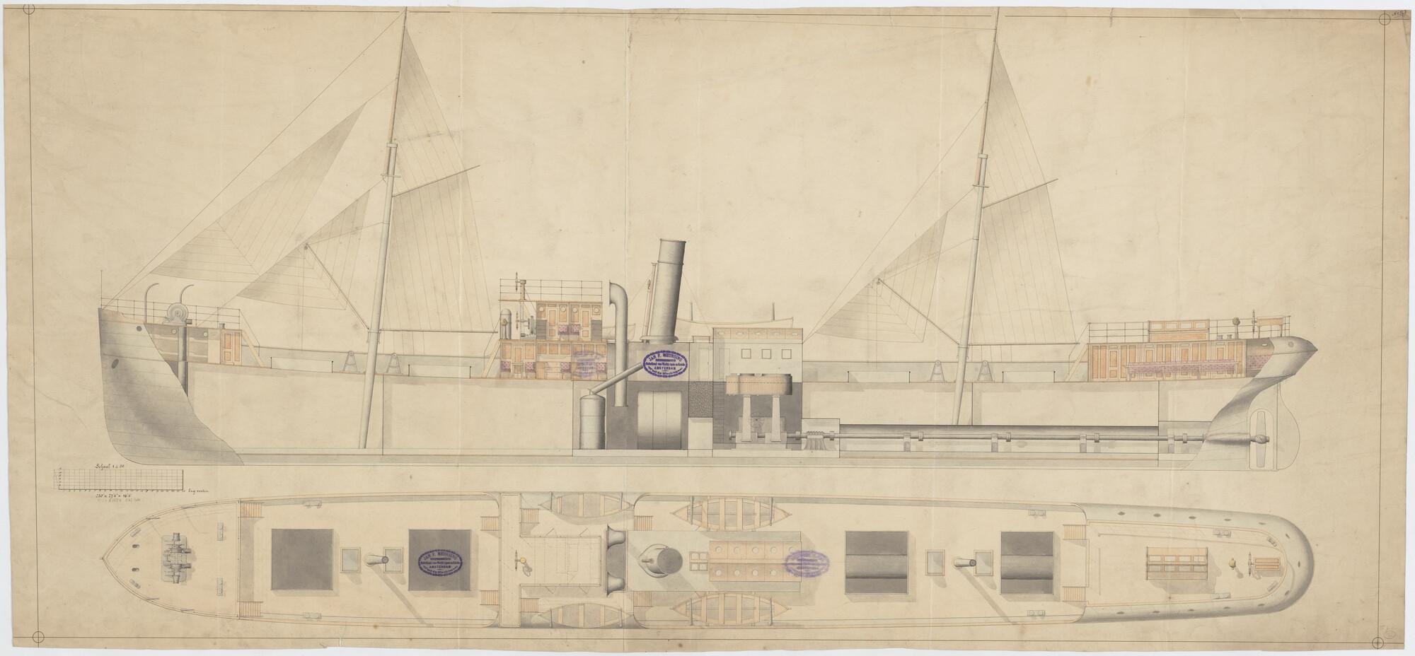 Verticale langsdoorsnede en bovenaanzicht van het Sc...