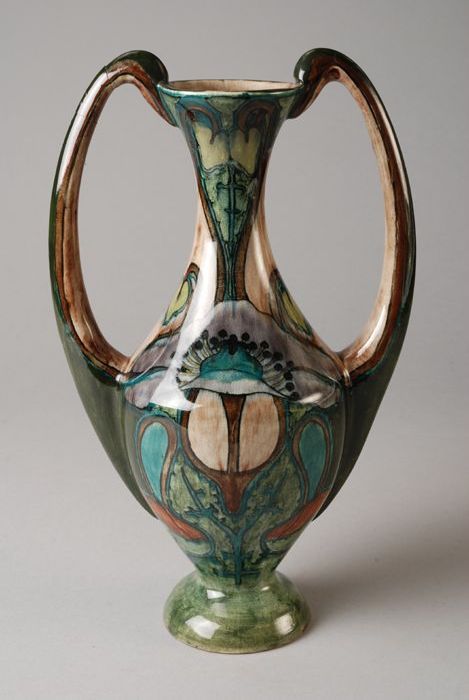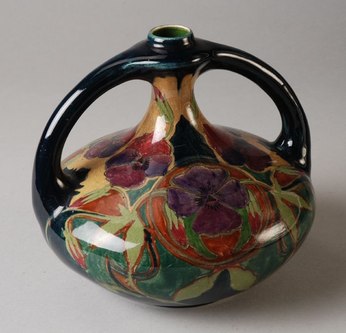 Vaas met blauw-, grijs-, groen- en paarskleurig enig...