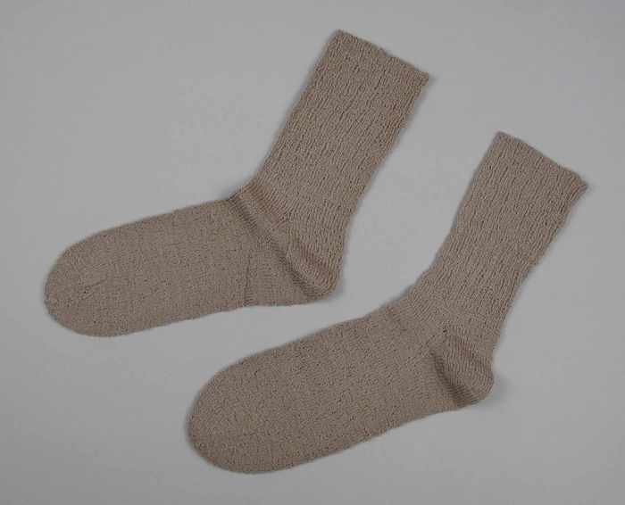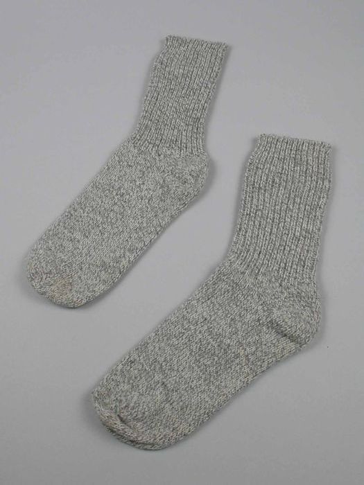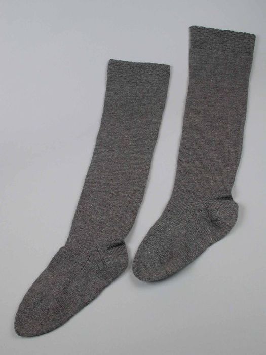 Paar sokken, gebreid van grijs gemêleerde wol, afgek...