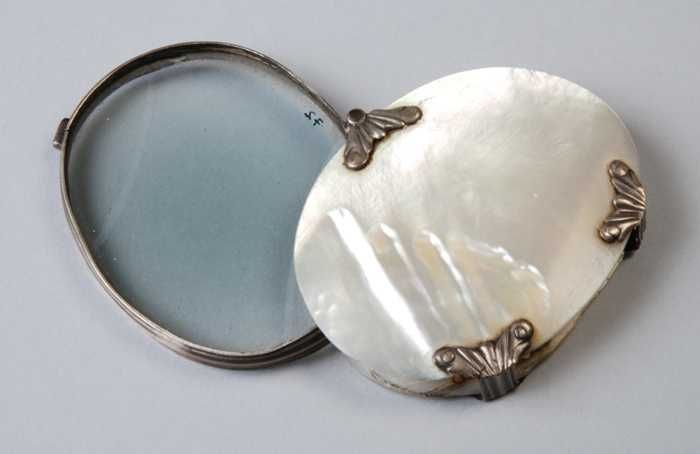 Opvouwbaar vergrootglas gevat in parelmoer ovaal cac...