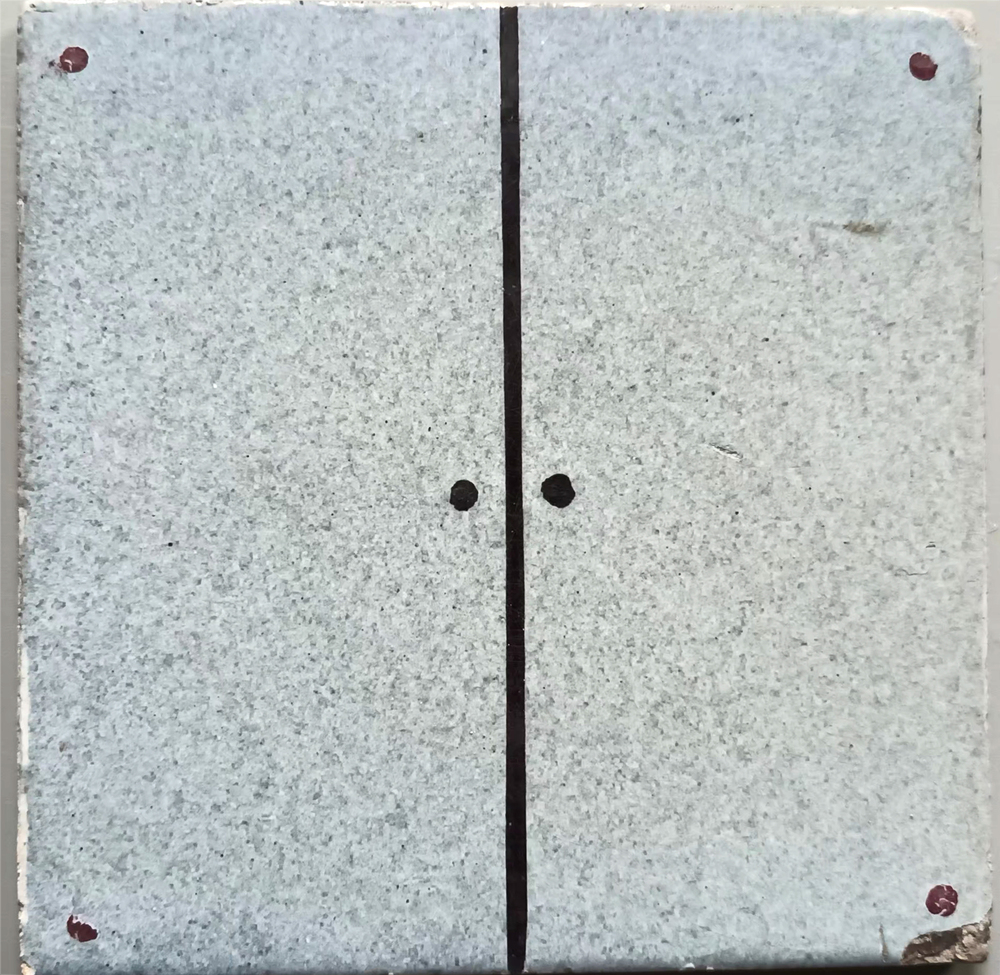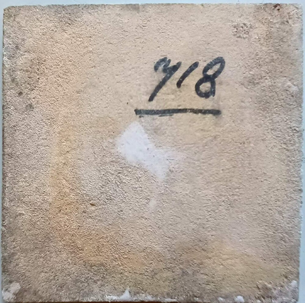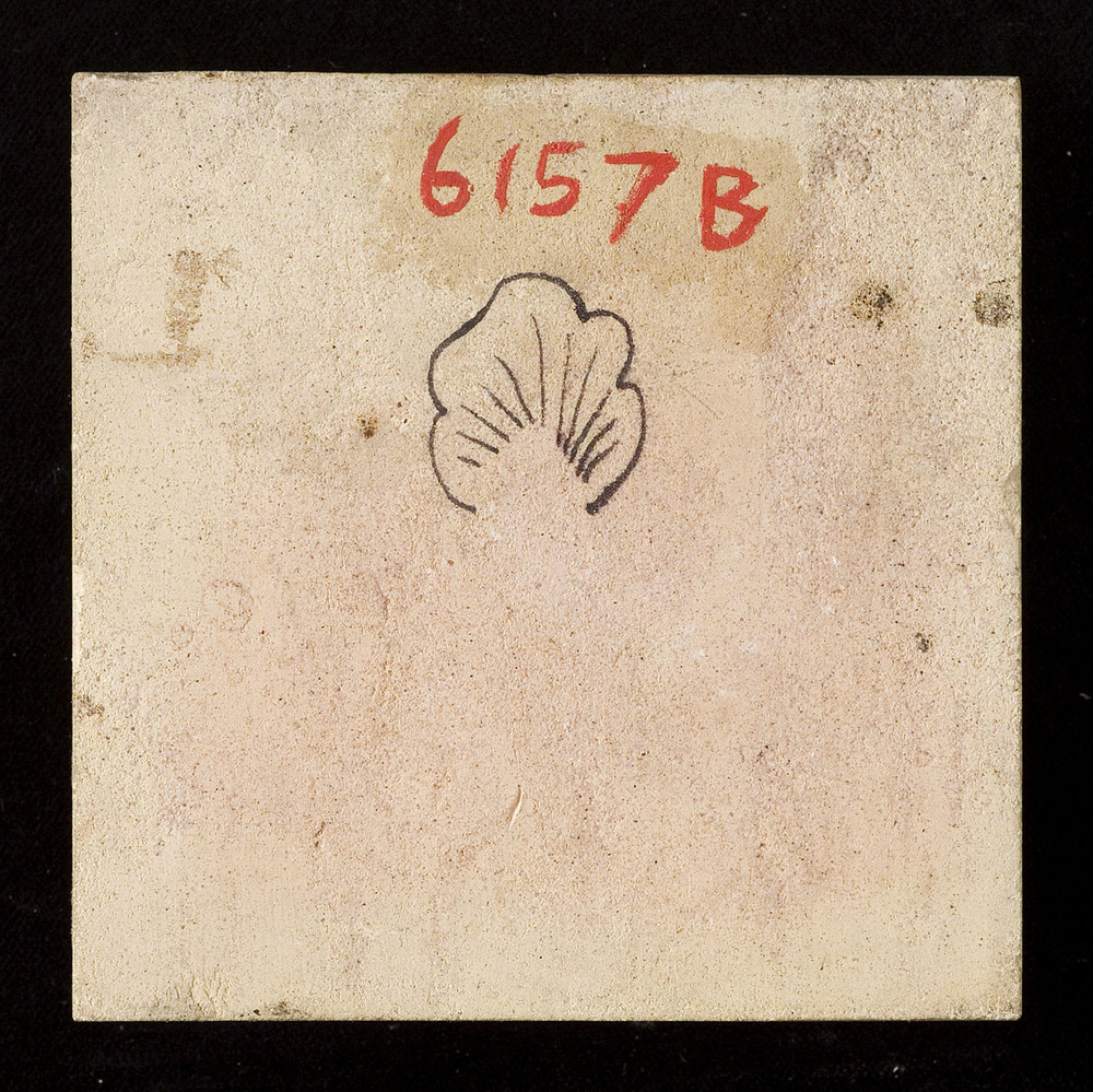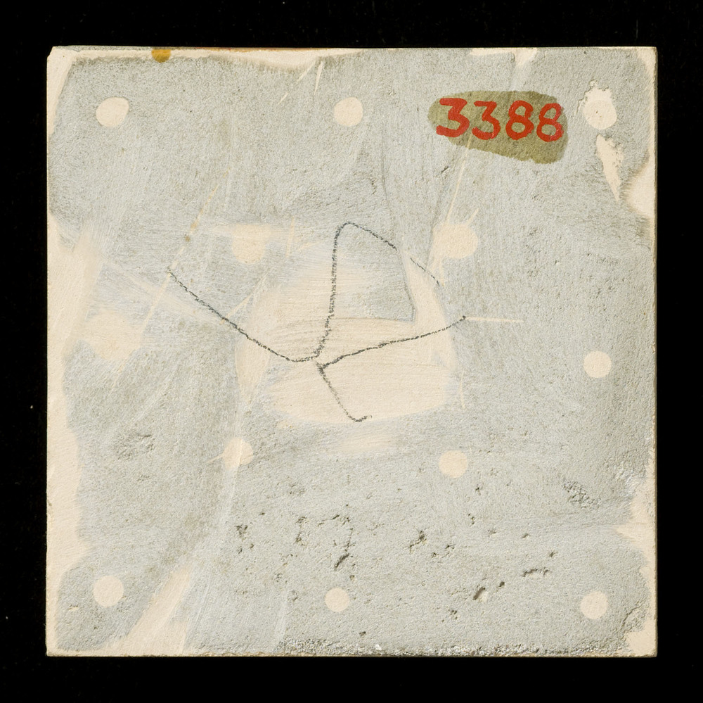 tegel van keramiek deels gesjabloneerd op een gespre...