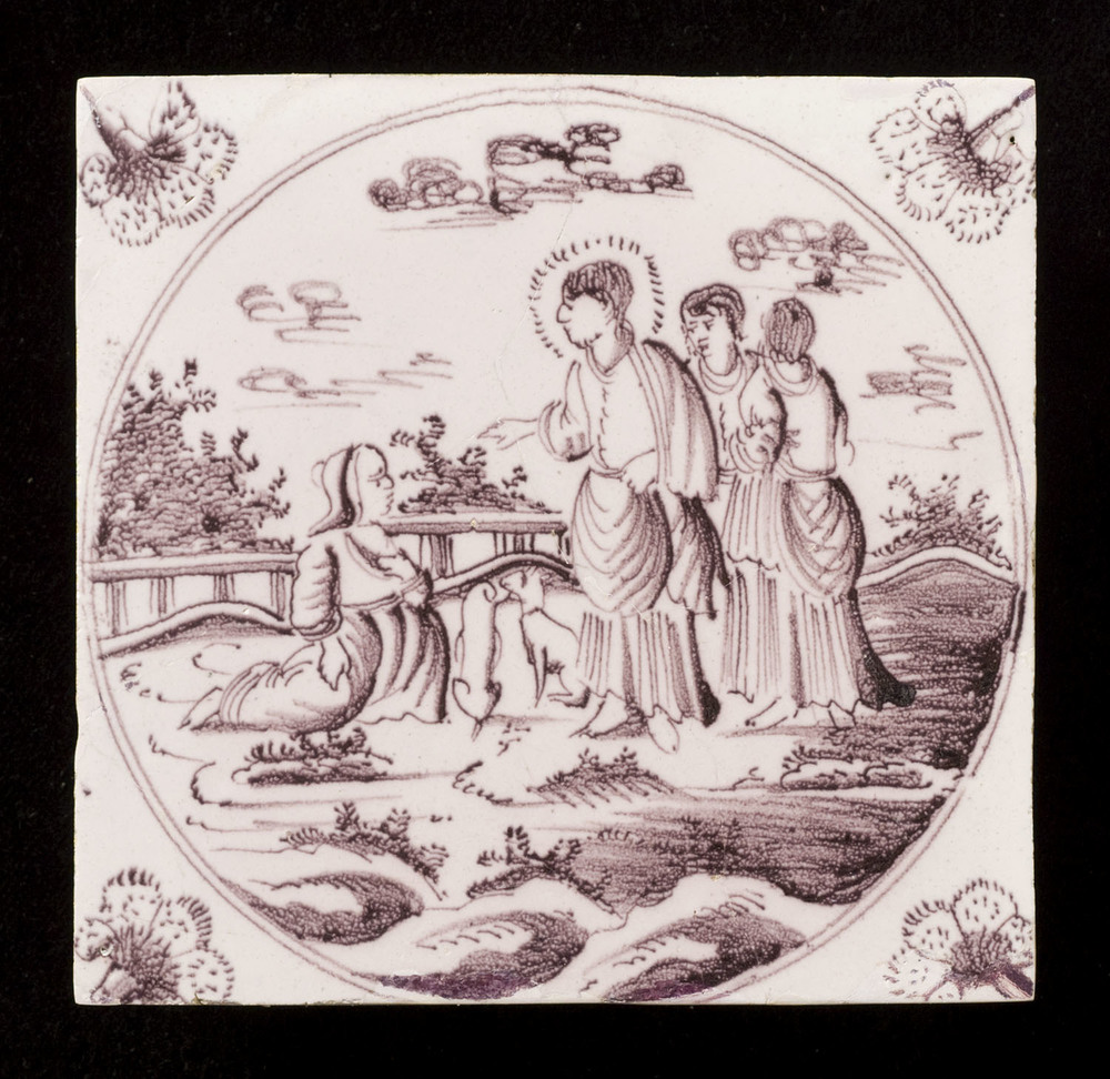 tegel van aardewerk met tinglazuur, voorstellende: d...