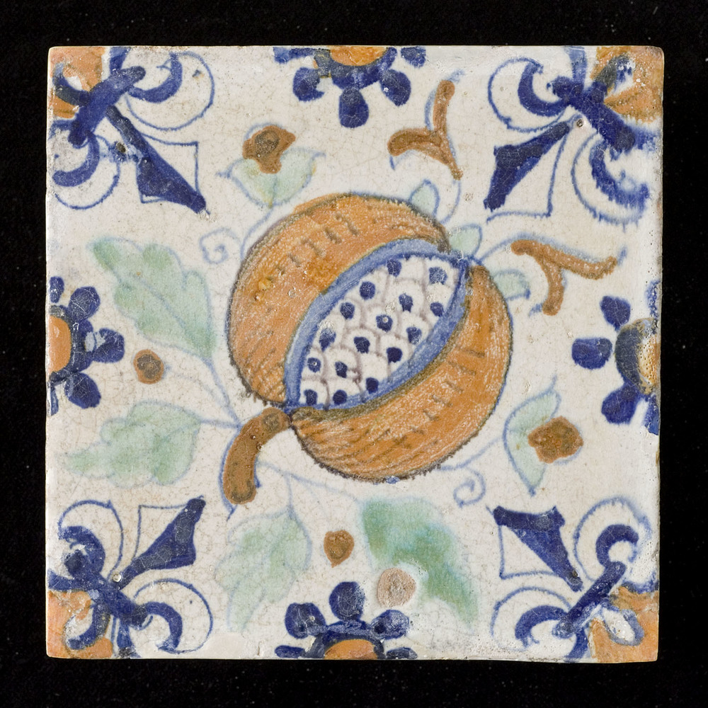 tegel van keramiek met tinglazuur, voorstellende: or...