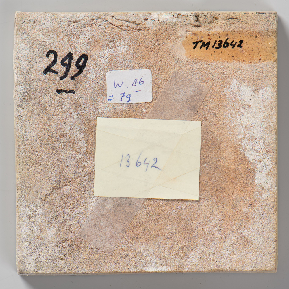 Tegel van keramiek met tinglazuur, voorstellende: de...