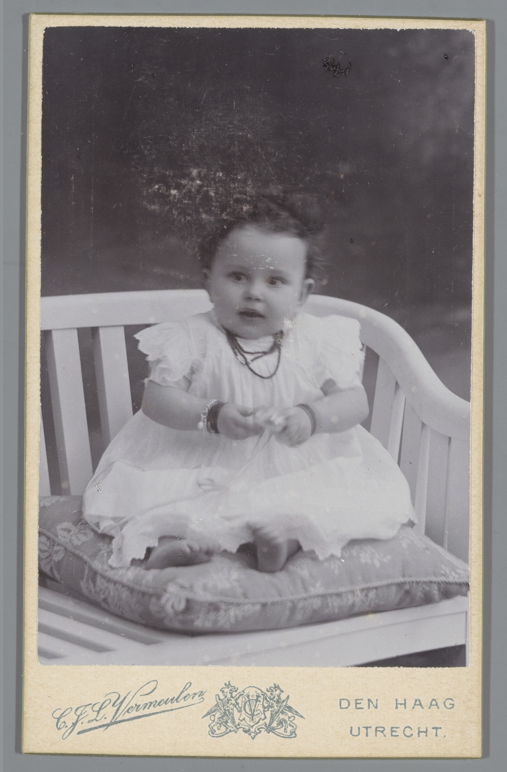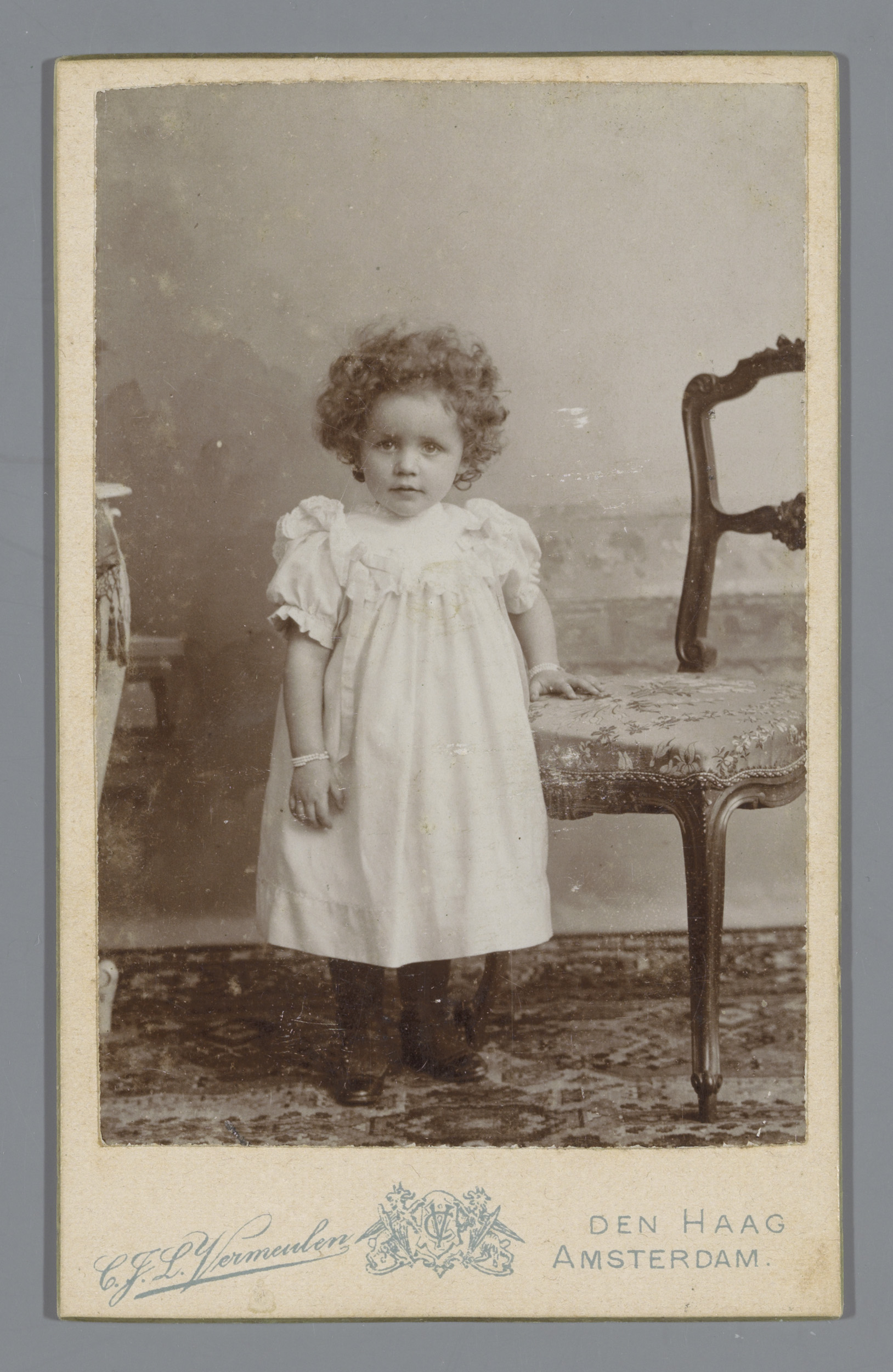 Portret van een onbekend kind, zittend in een fauteuil