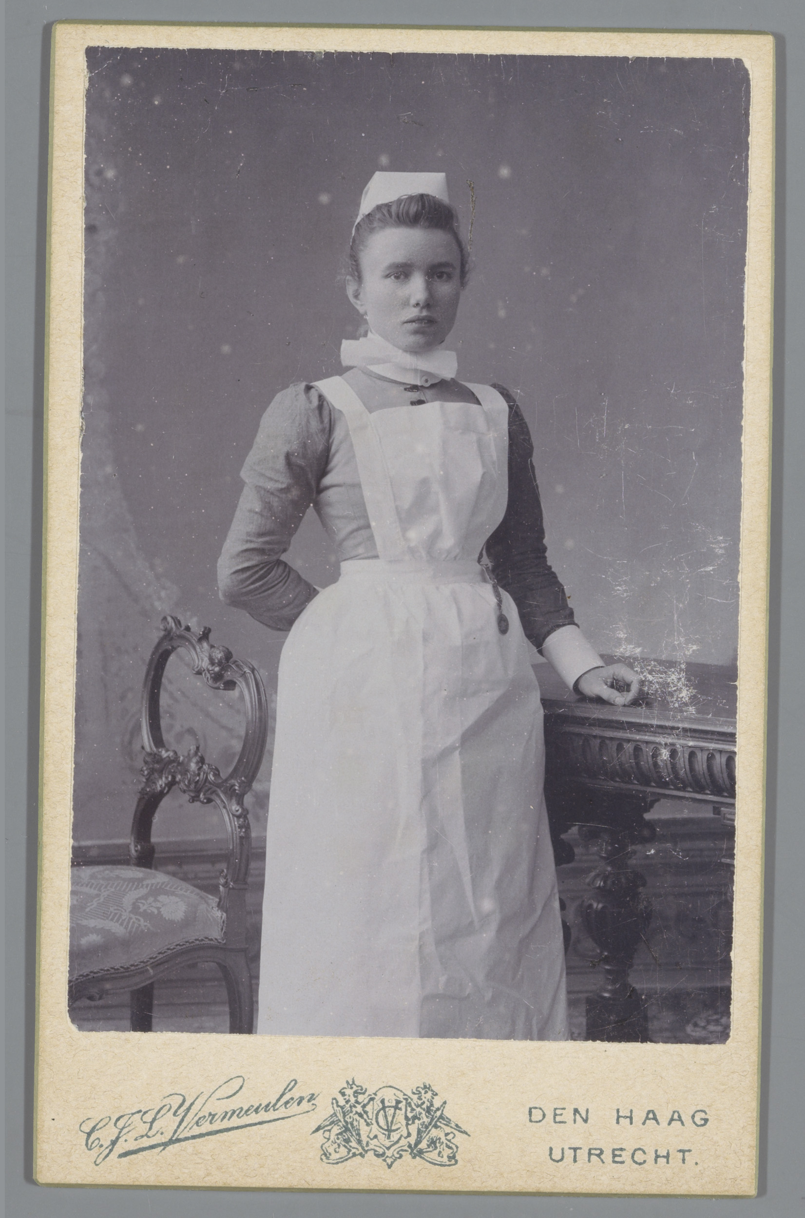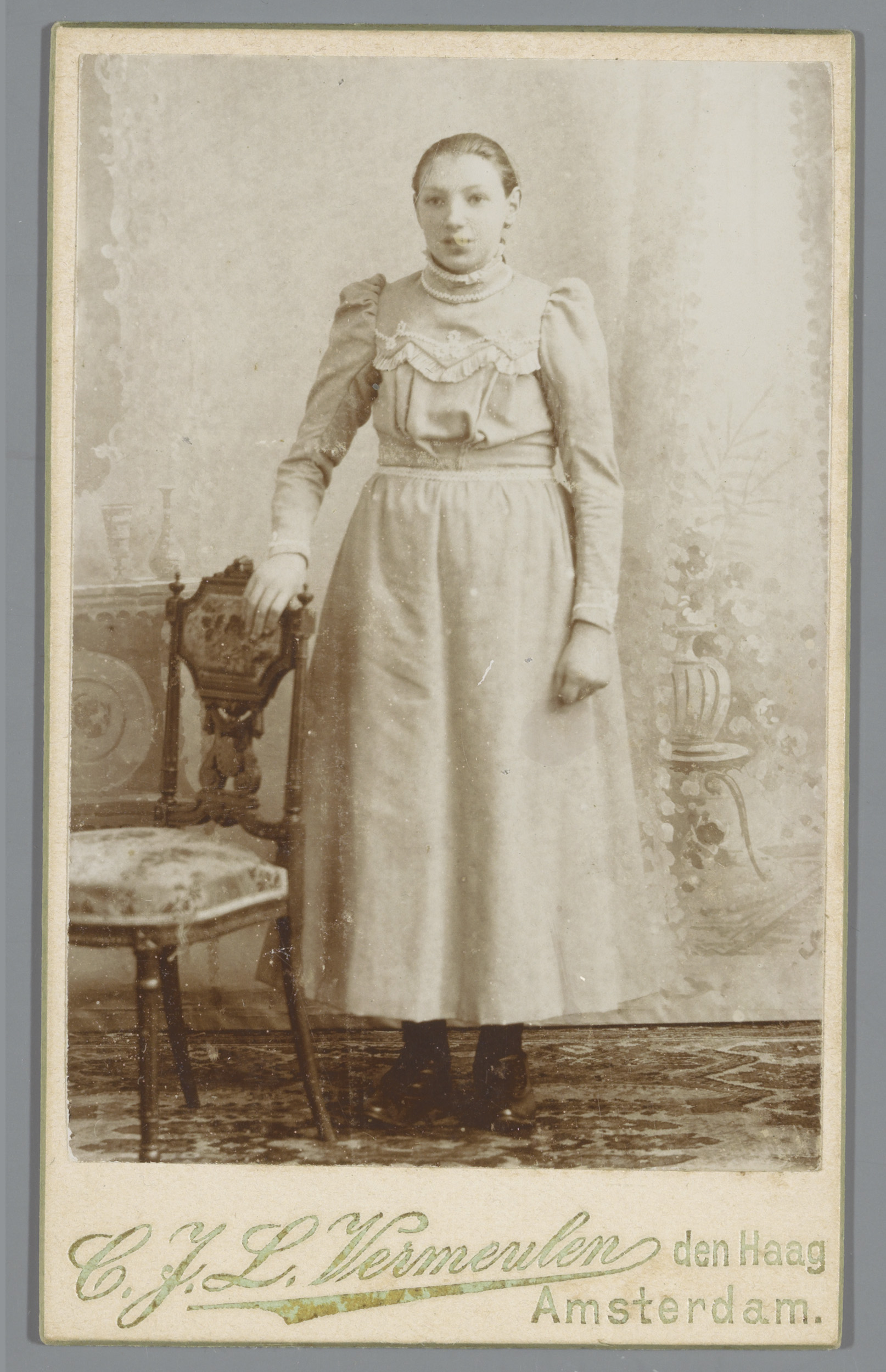 Portret van een onbekend meisje, staande naast een s...