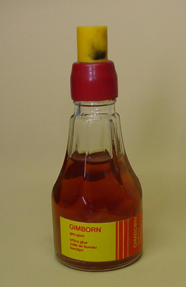 Flesje van glas gevuld met stempelinkt door H. van G...