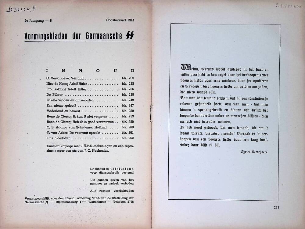 Vormingsbladen der Nederlandsche SS Jaargang 4, no 8...