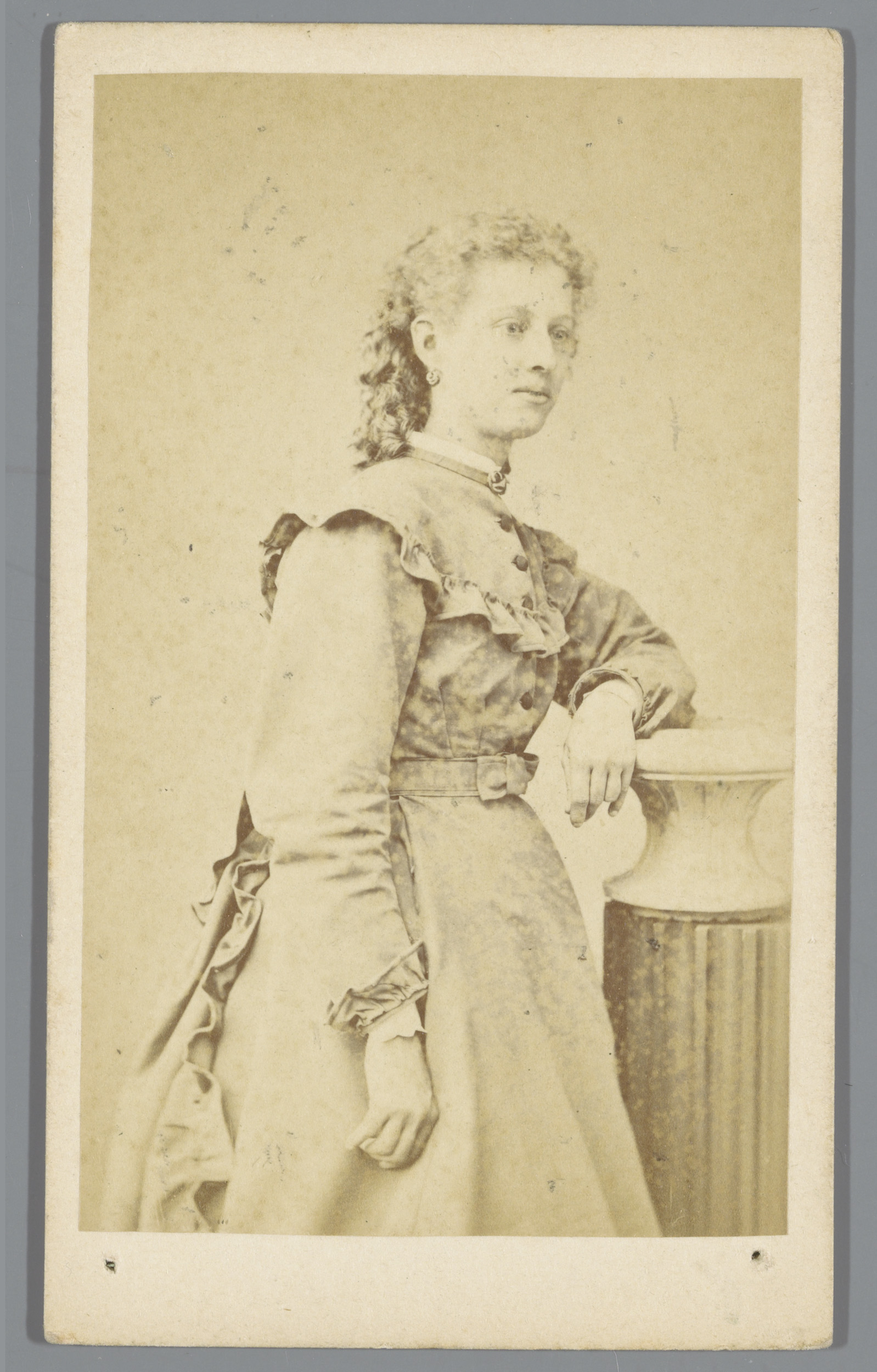 Portret van een onbekende vrouw, staande naast een s...