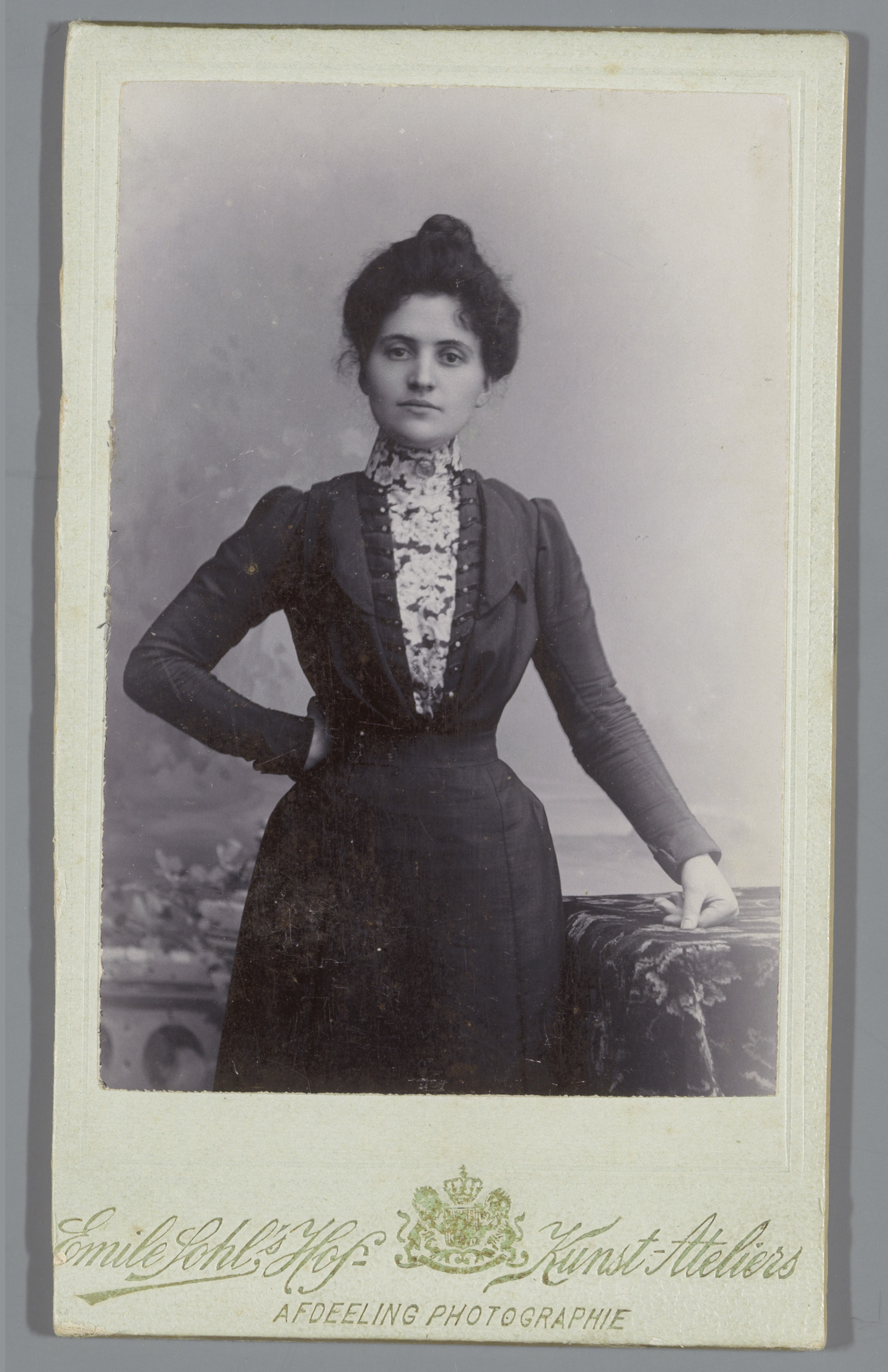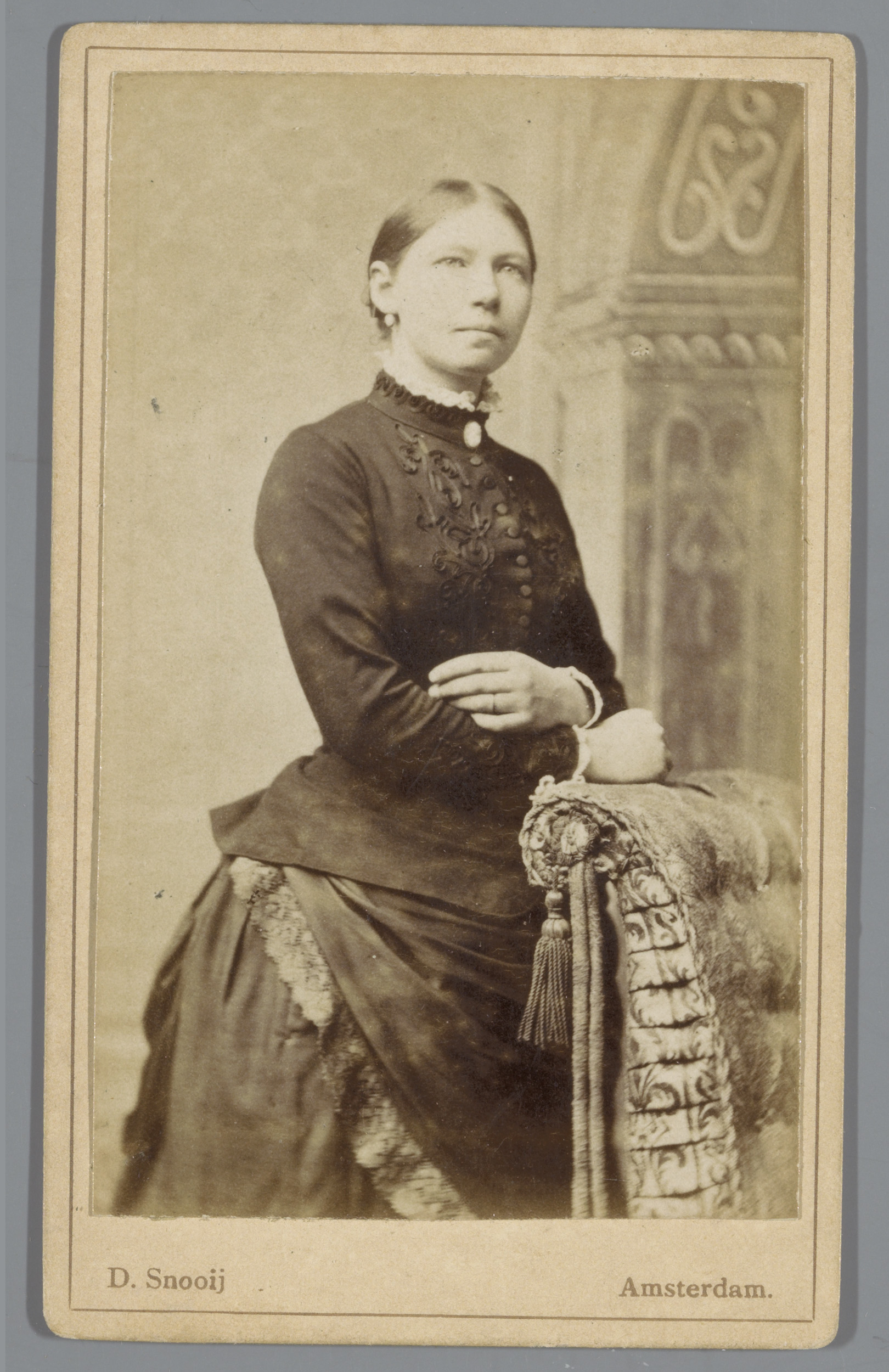 Portret van een onbekende vrouw, leunend over de rug...
