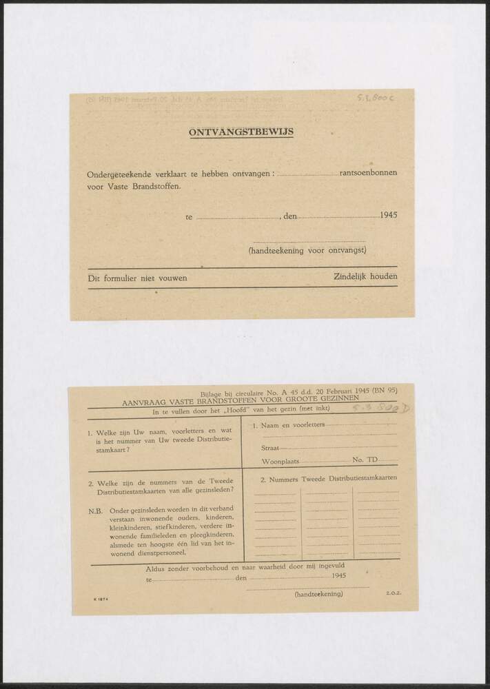 Ontvangstbewijs rantsoenbonnen vaste brandstoffen