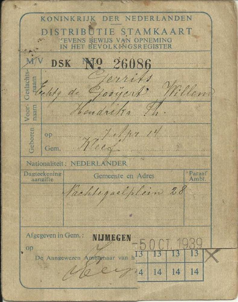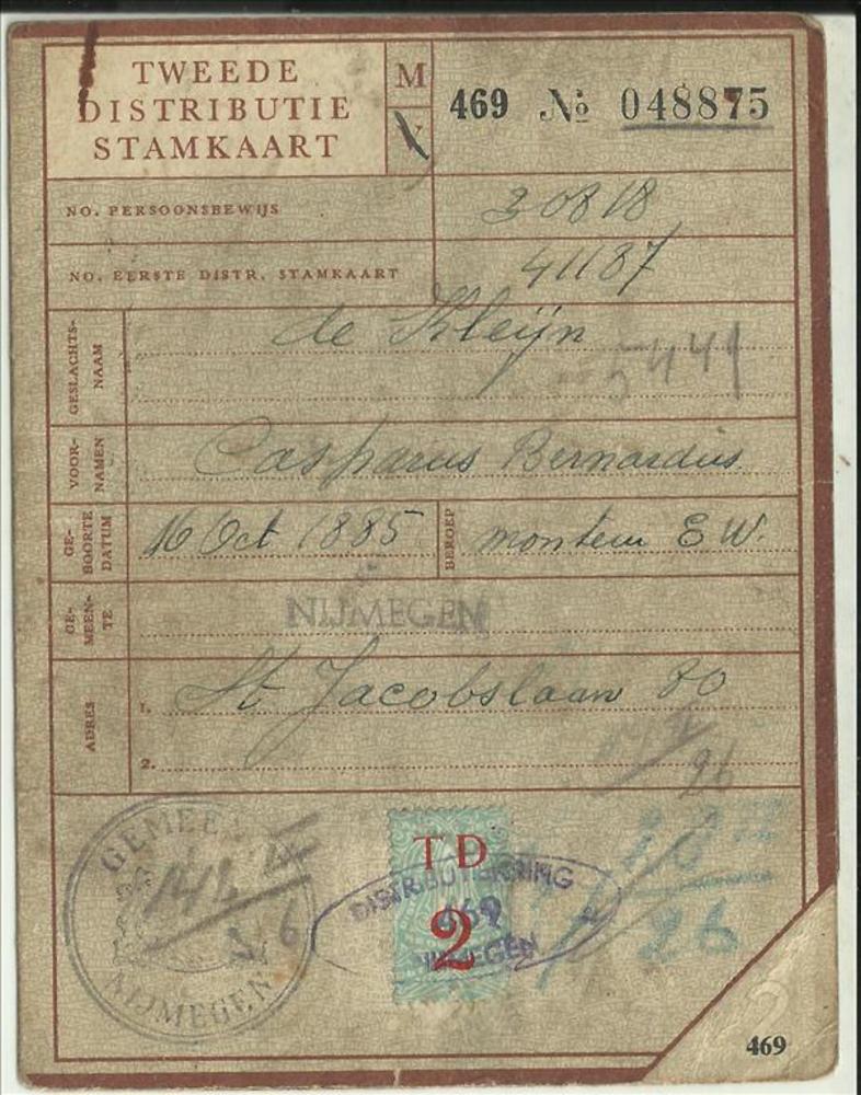 Tweede Distributiestamkaart van : De Kleijn, Casparus