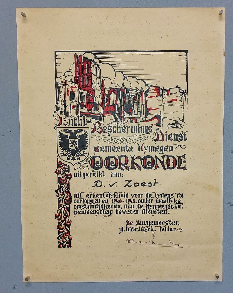 luchtbeschermingsdienst gemeente Nymegen Oorkonde