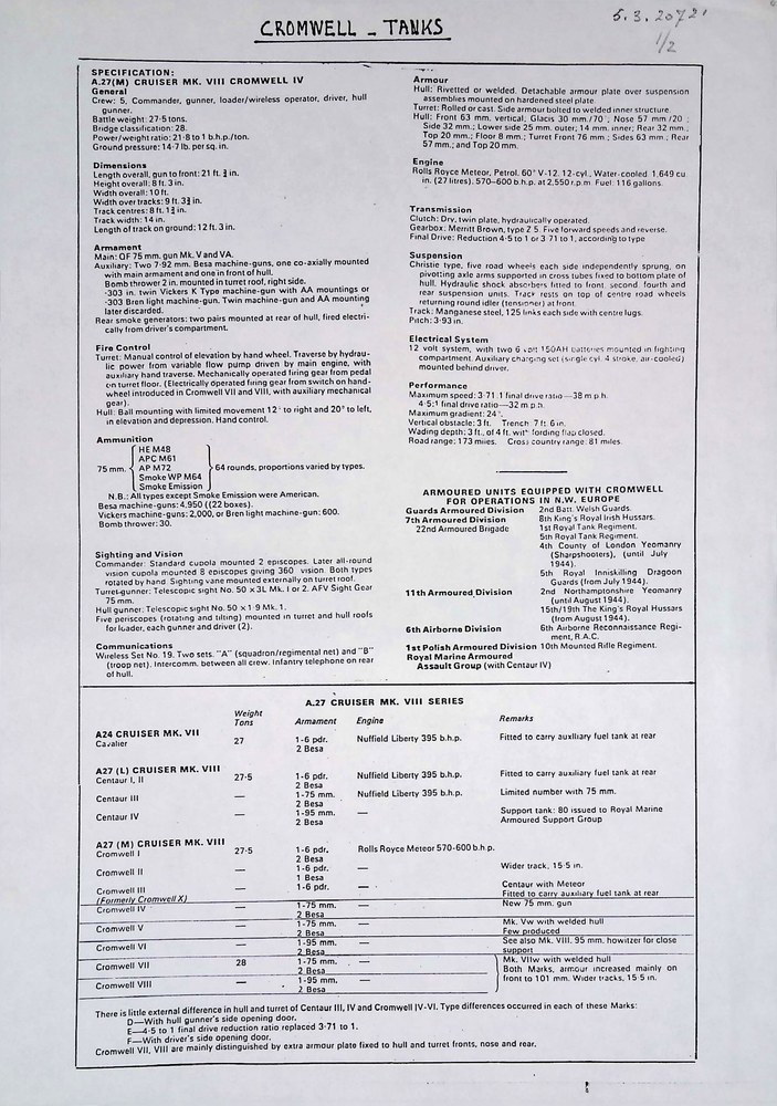 specificatie Cromwell tank