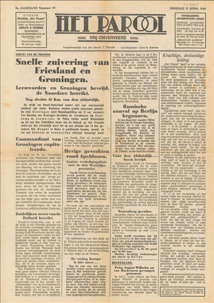 Het Parool, 1 augustus 1945, 5e Jaargang, No 173