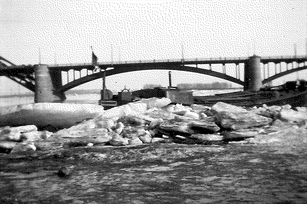 Foto van ijs op de kade van de waal bij Nijmegen
