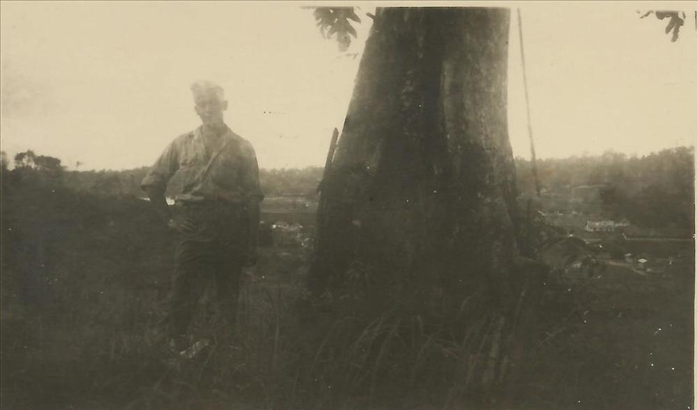 Nederlands Indië; militair, boomstam, kampong