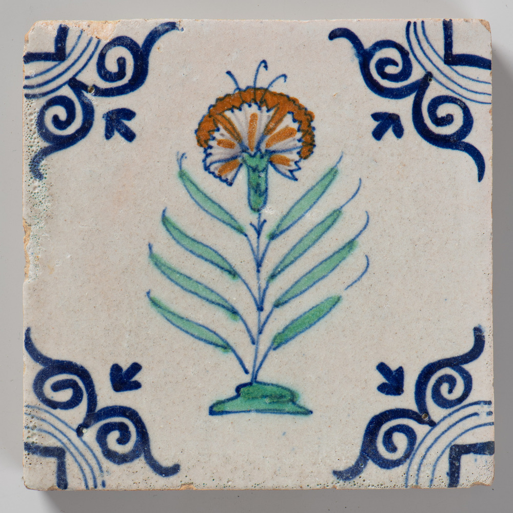 tegel van aardewerk met tinglazuur, voorstellende: h...