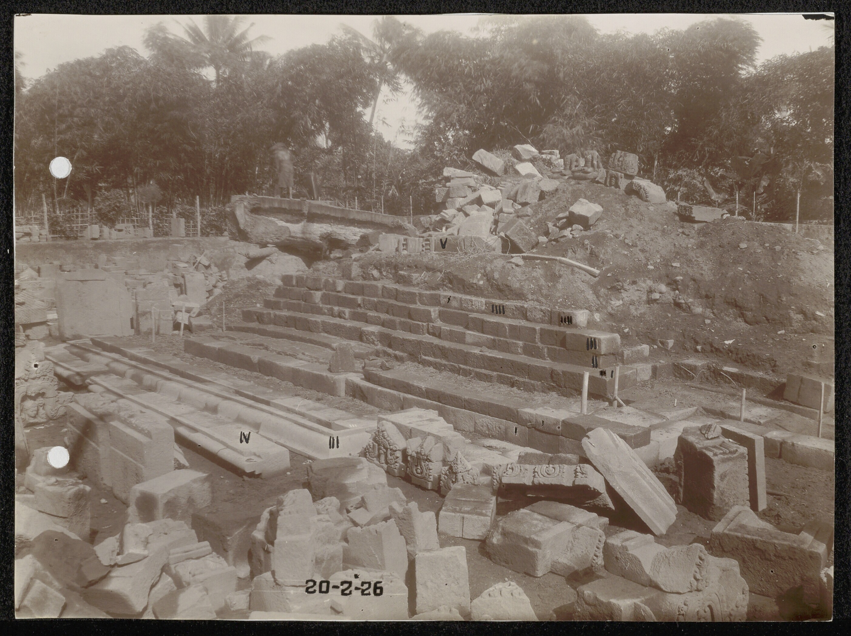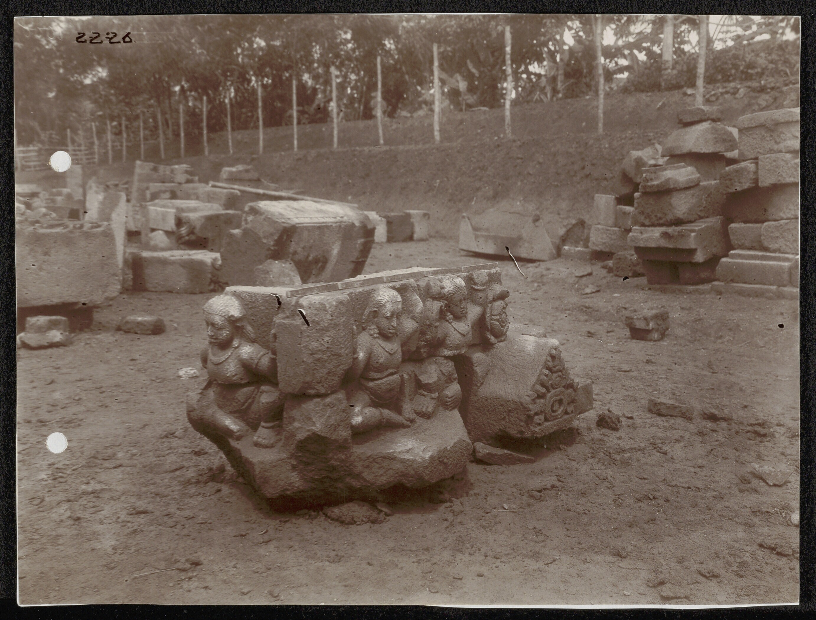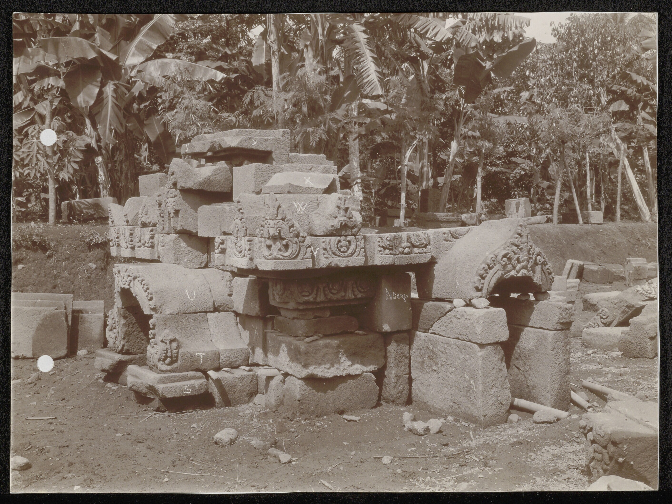 Delen van een Indo-Javaanse tempel bij Karangnongko ...