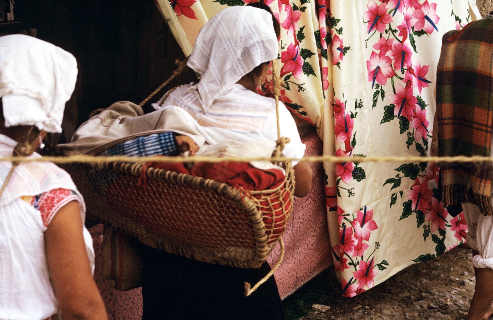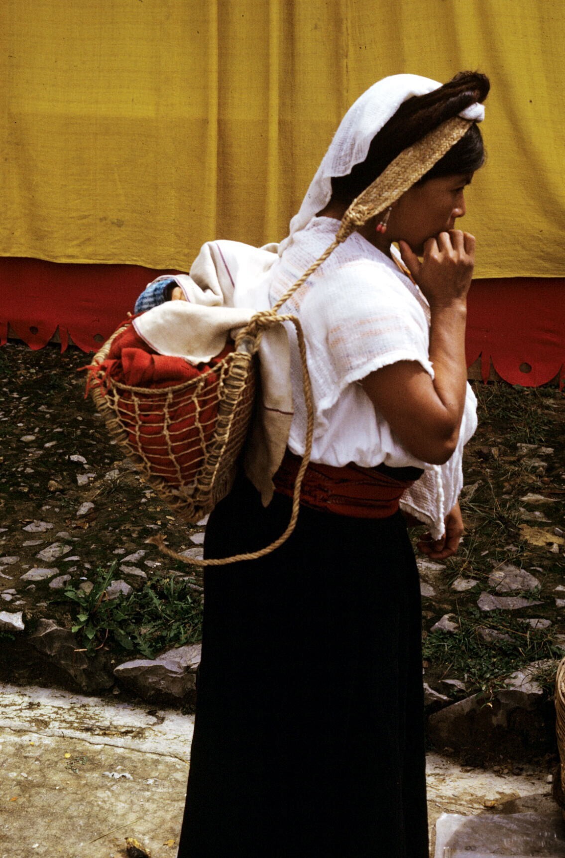vrouw met "hua'cal " (draagmand van de Cuetzalan-reg...