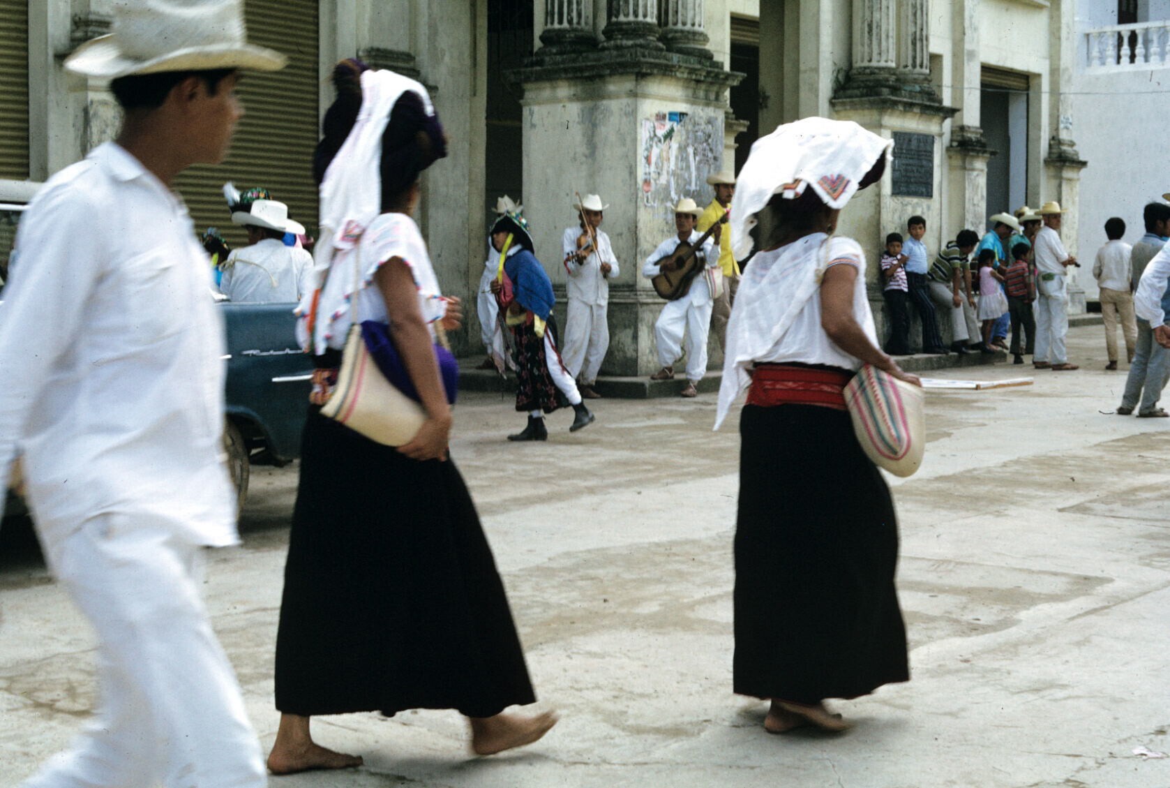 vrouw met "hua'cal " (draagmand van de Cuetzalan-regio)