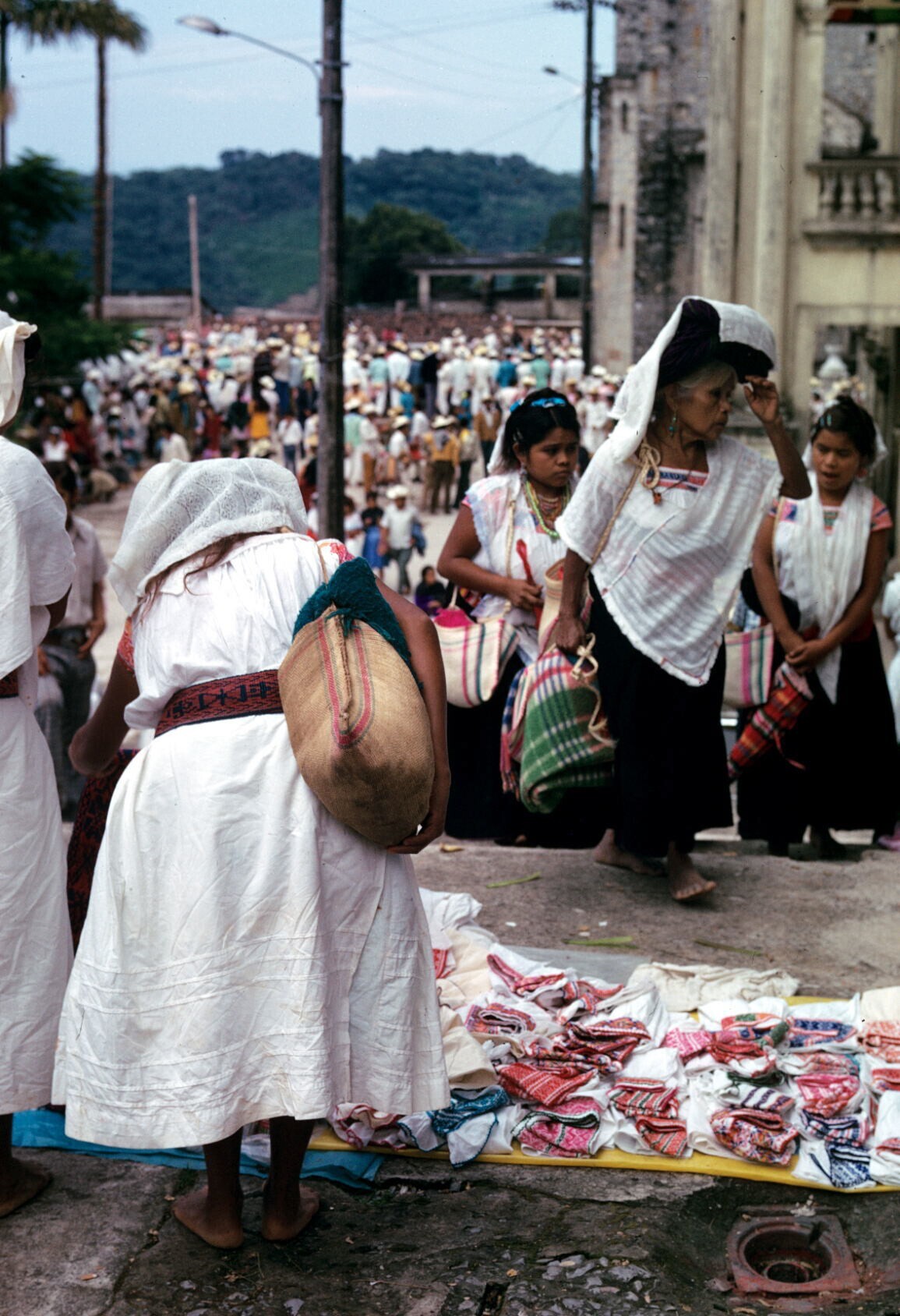 vrouwen op markt; NB "maxtahual" (tulbandachtige haa...