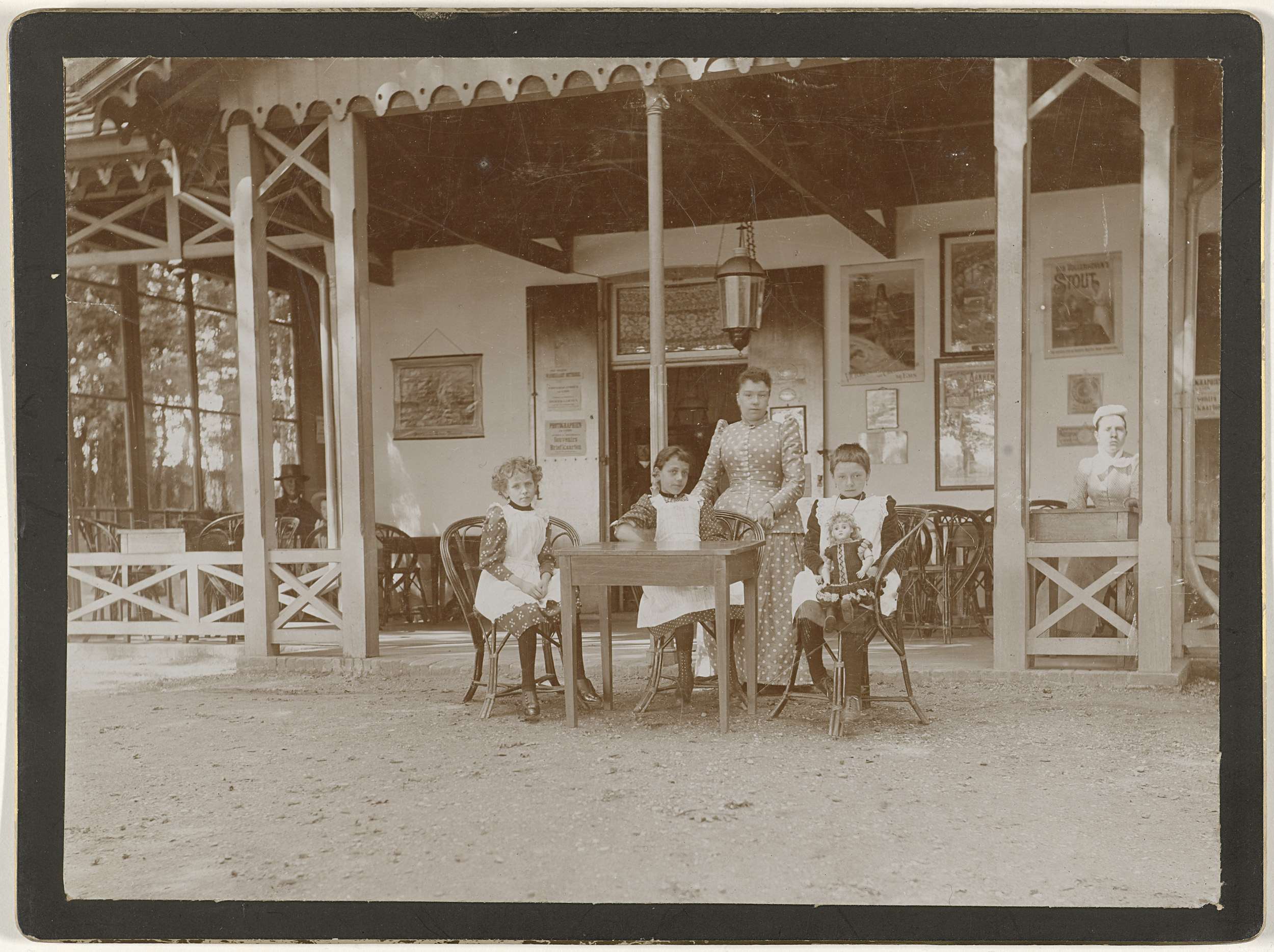 Drie meisjes en een jonge vrouw bij uitspanning West...