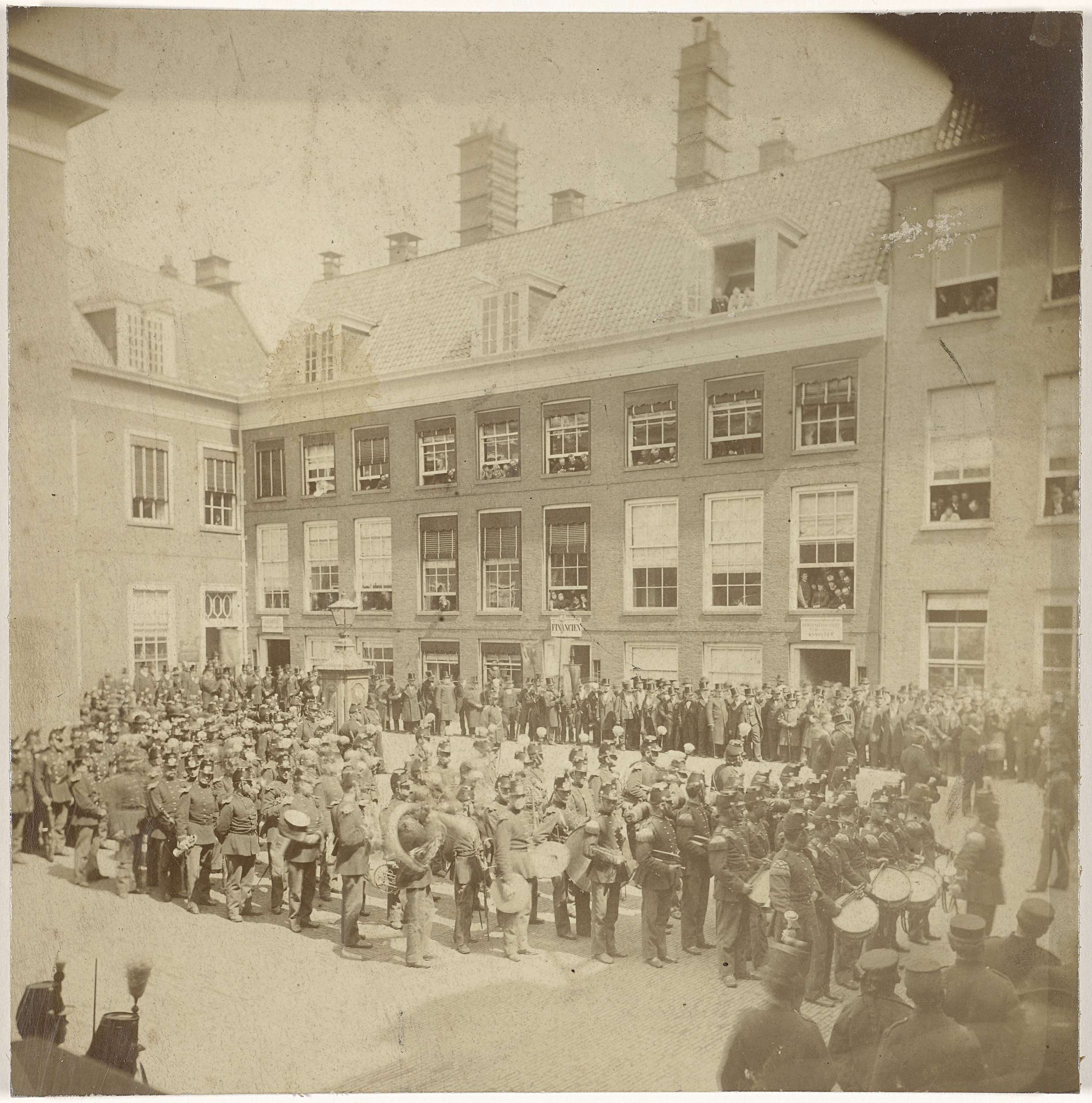 Schutterij op de binnenplaats van het stadhuis van A...