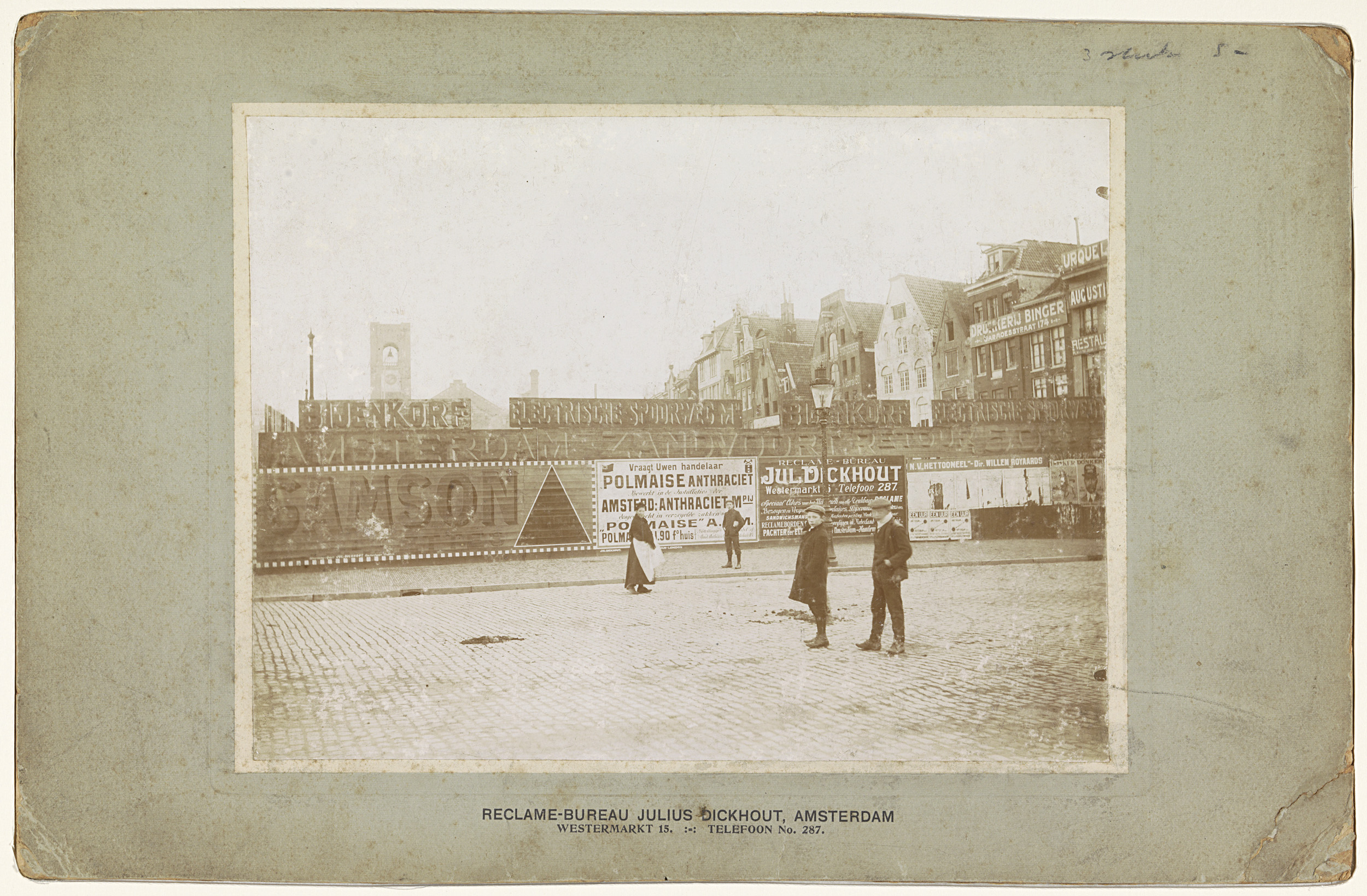 Schutting met affiches (bouwput Bijenkorf, Dam) in A...