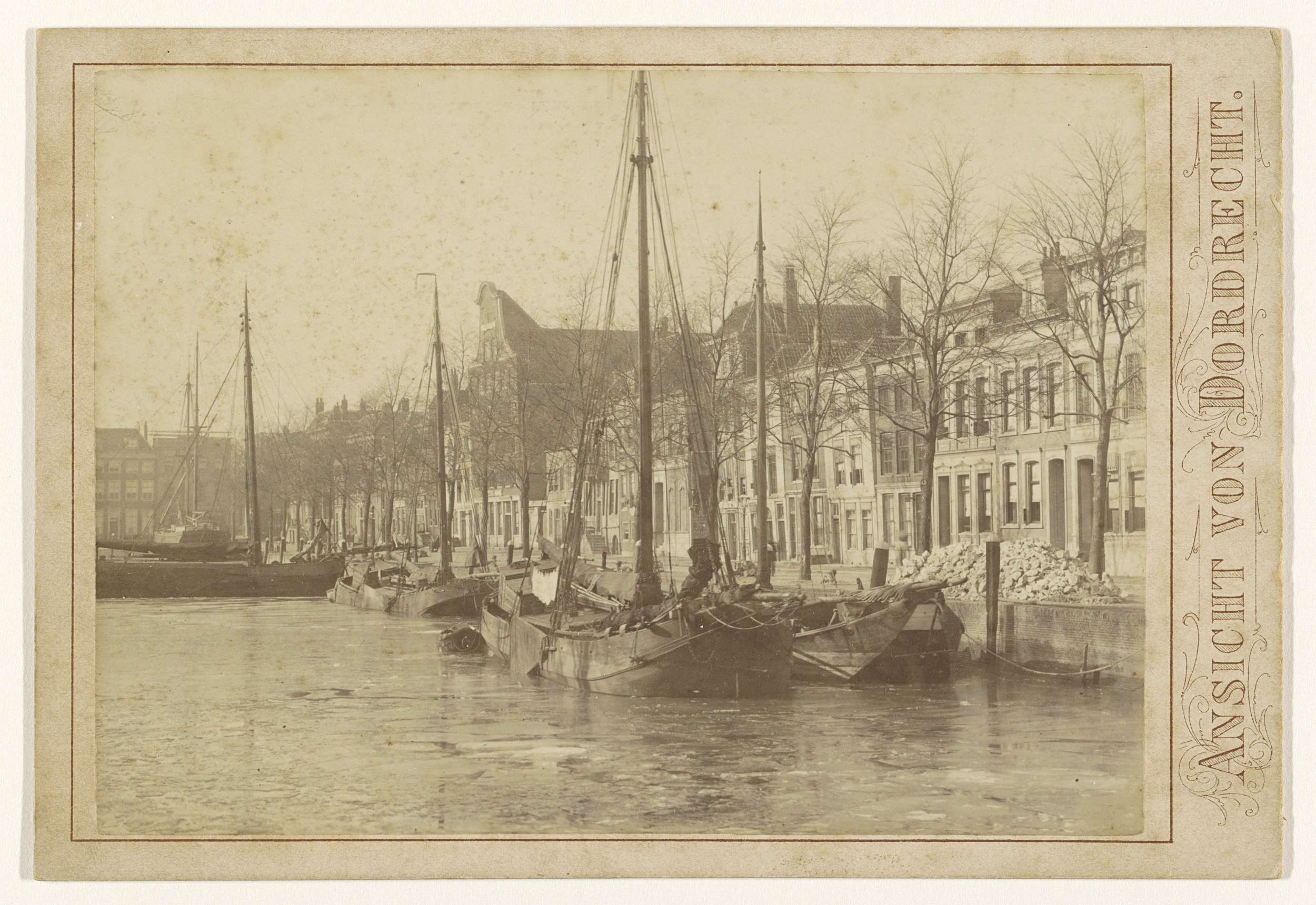 Schepen in een gracht in Dordrecht, in de winter