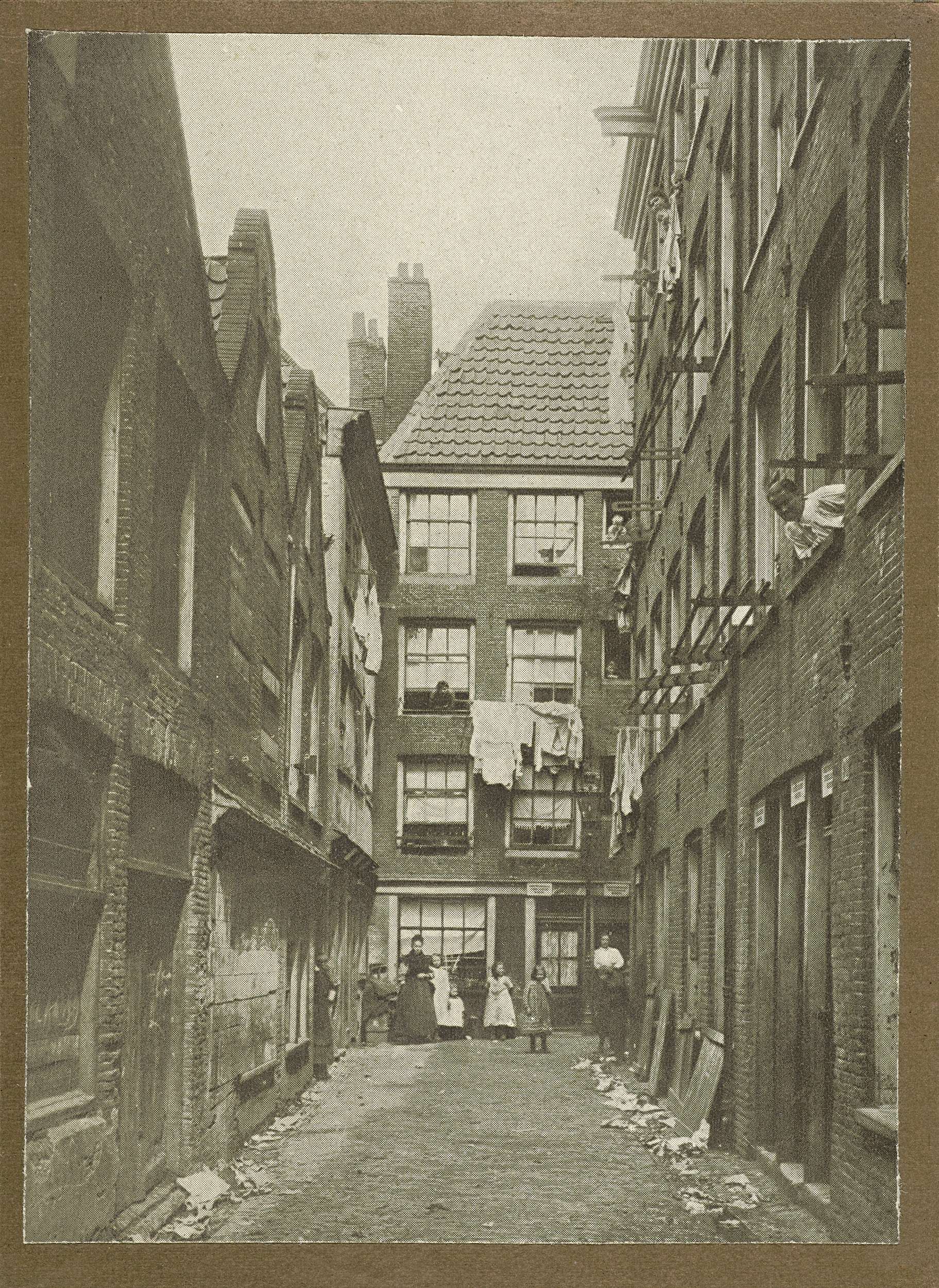 Vuile Weespad met bouwvallige woningen in Amsterdam