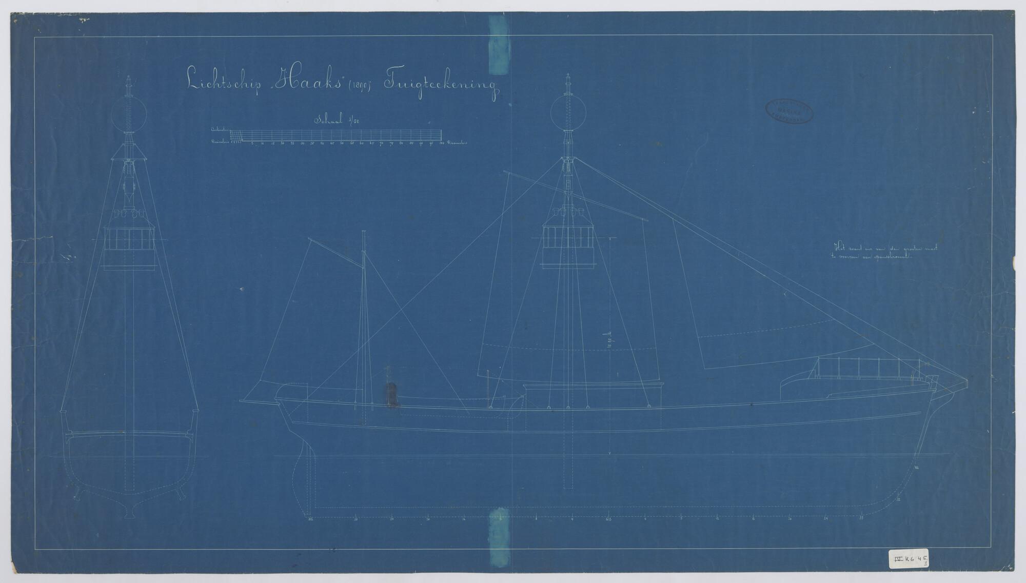 Het lichtschip 'Seven Stones', 1891. Spantenraam