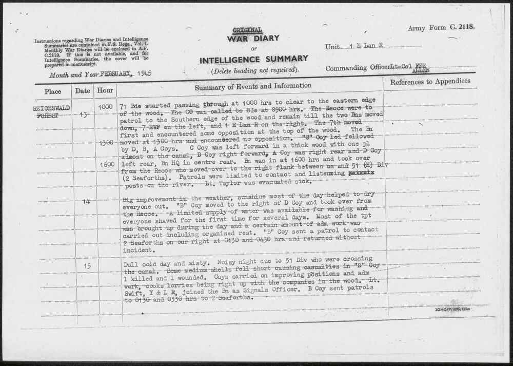 Oorlogsdagboek (War Diary) van 1st Battalion, East L...