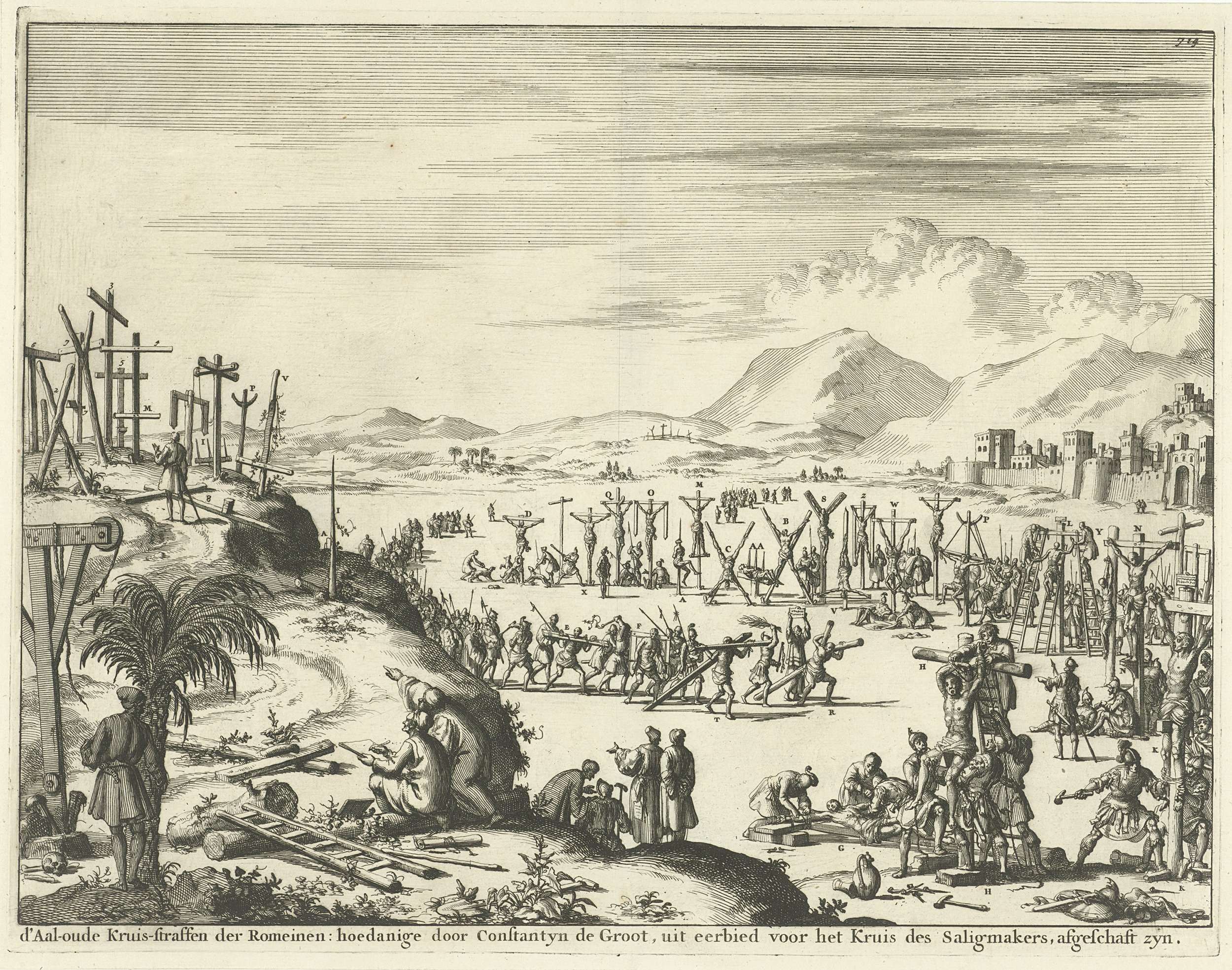 Kruisiging van veroordeelden buiten de stadsmuur