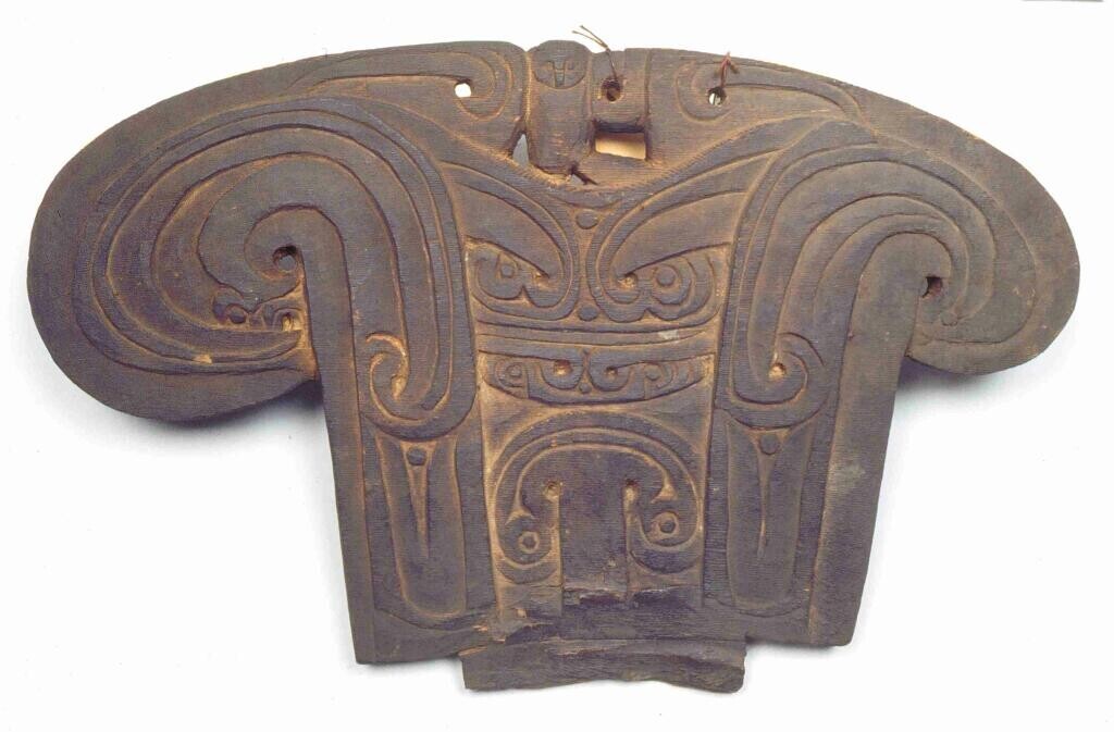 Neksteun van hout, versierd met relief gesnlen ornam...