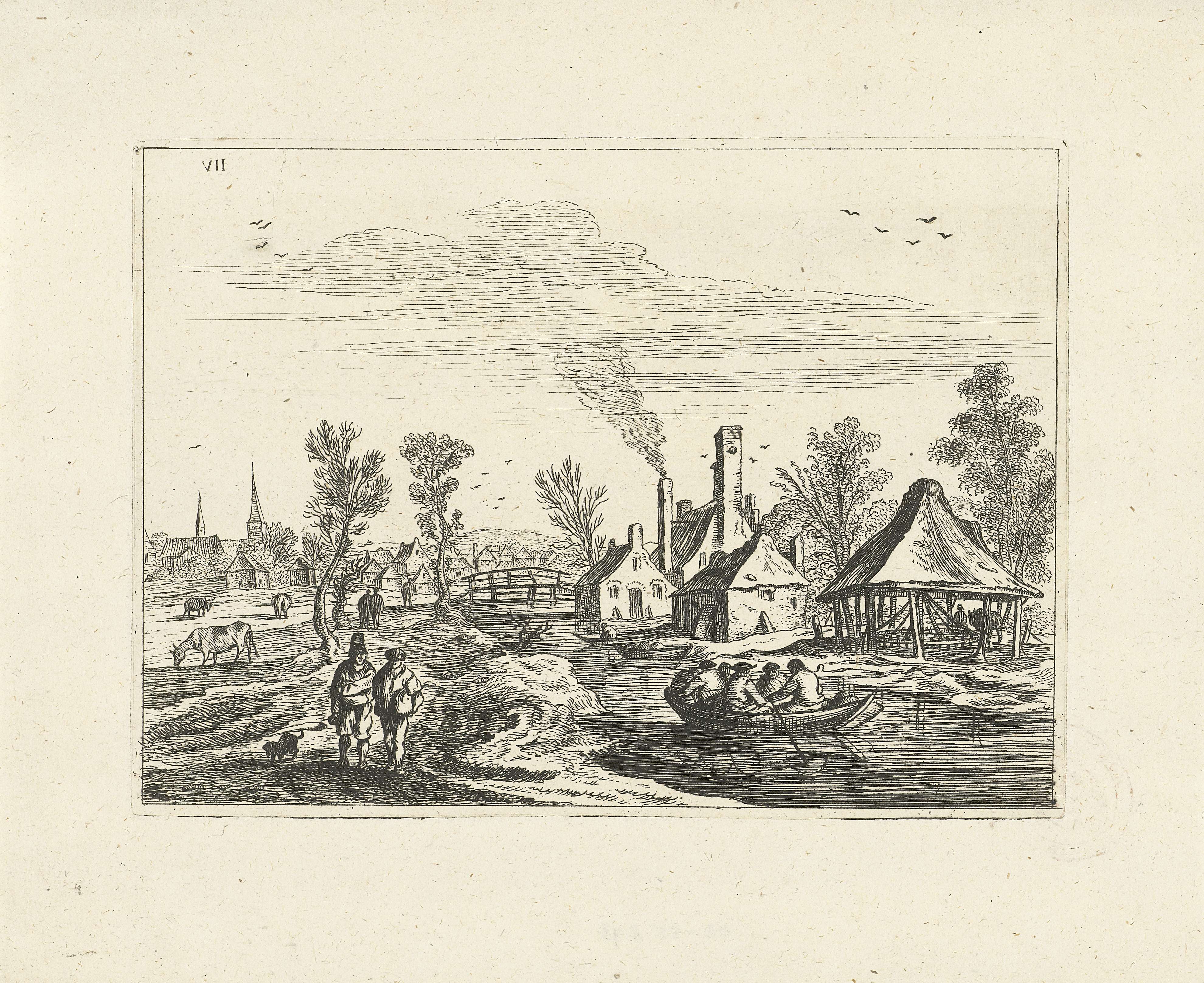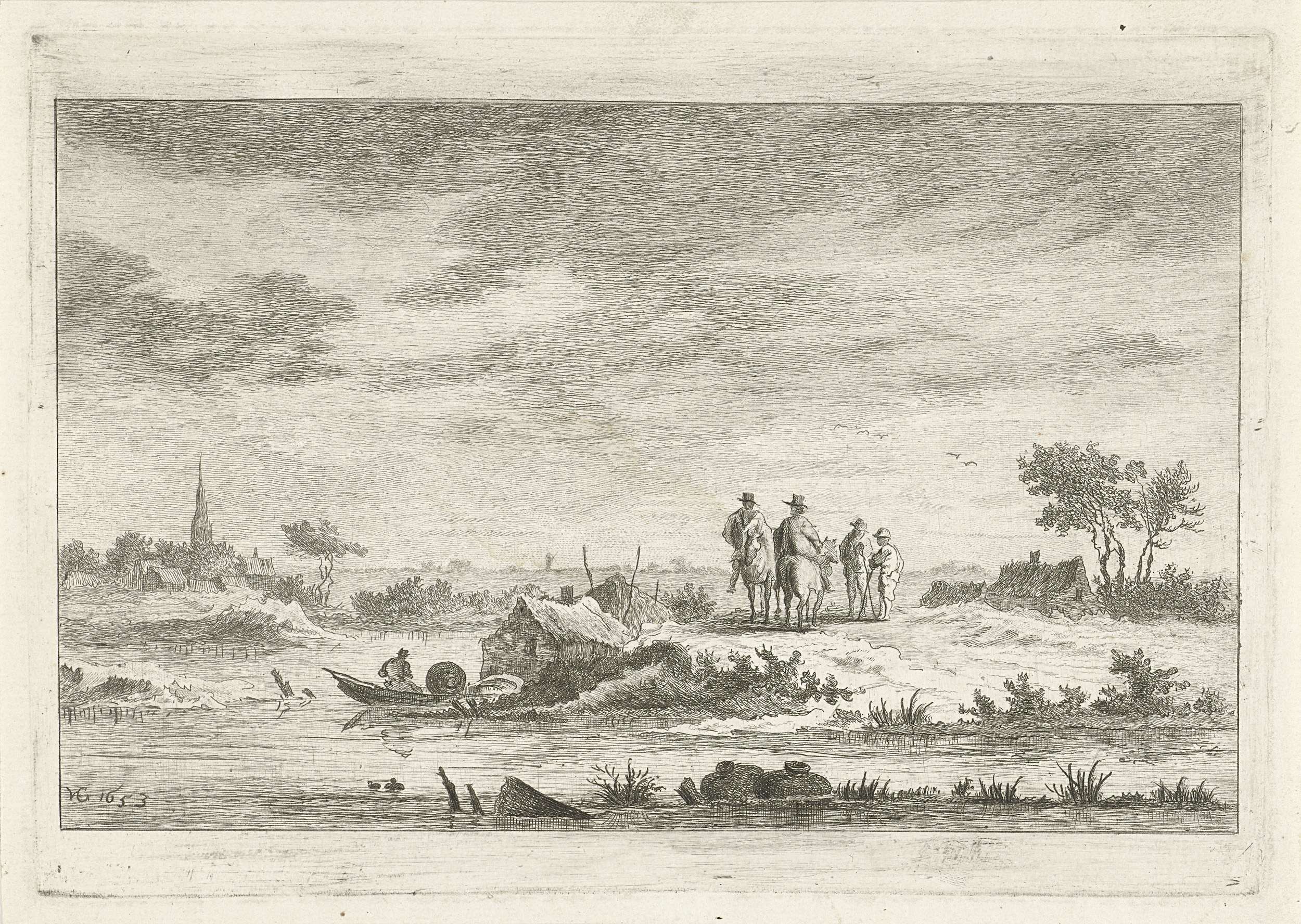 Reizigers in een rivierlandschap