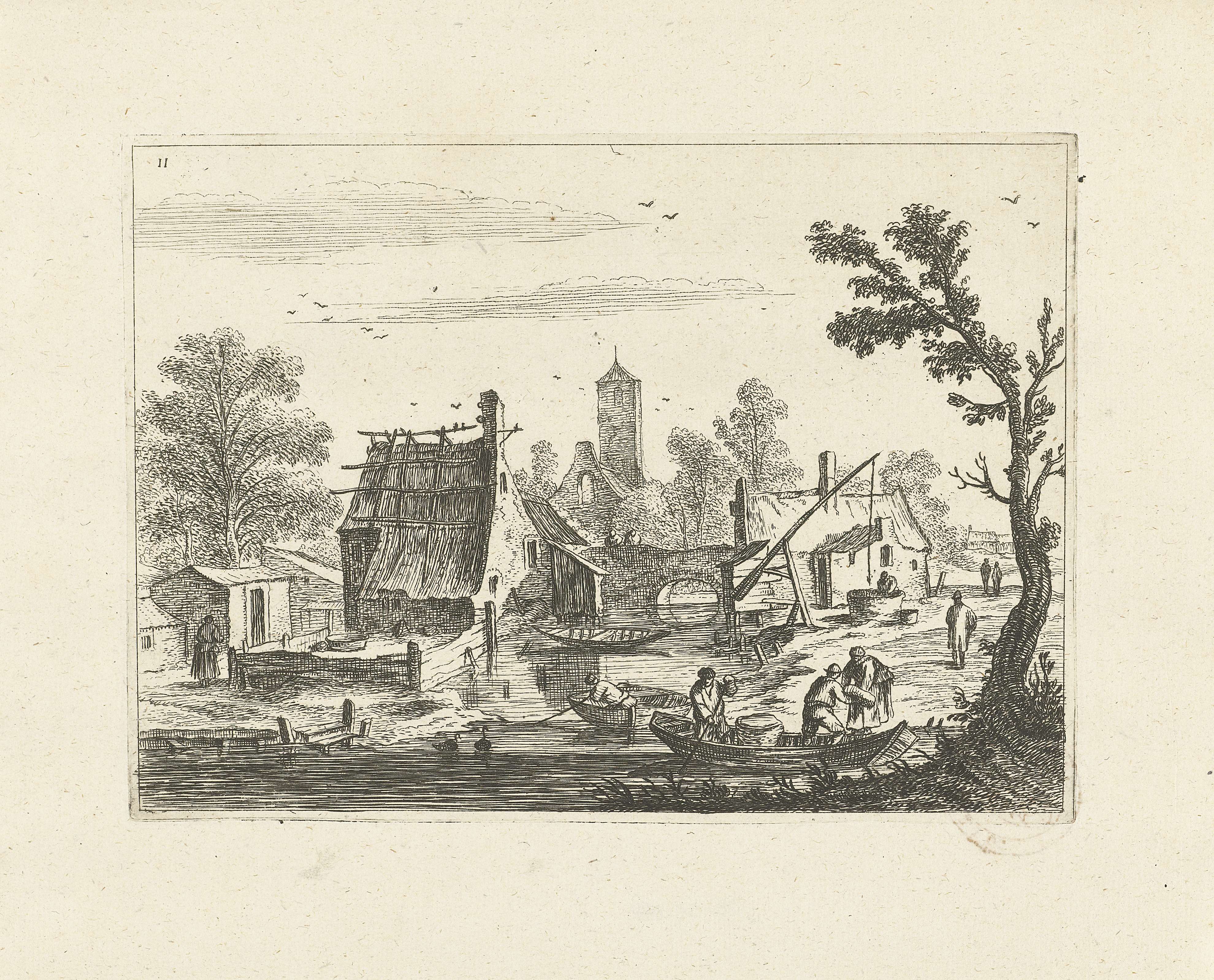Landschap met dorp aan rivier