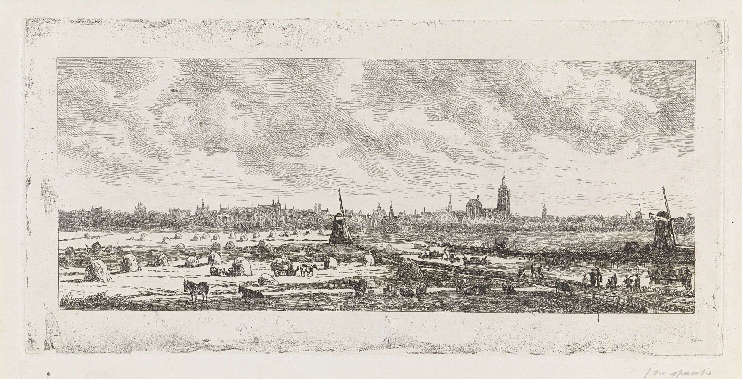 Rivierlandschap met een hooiberg