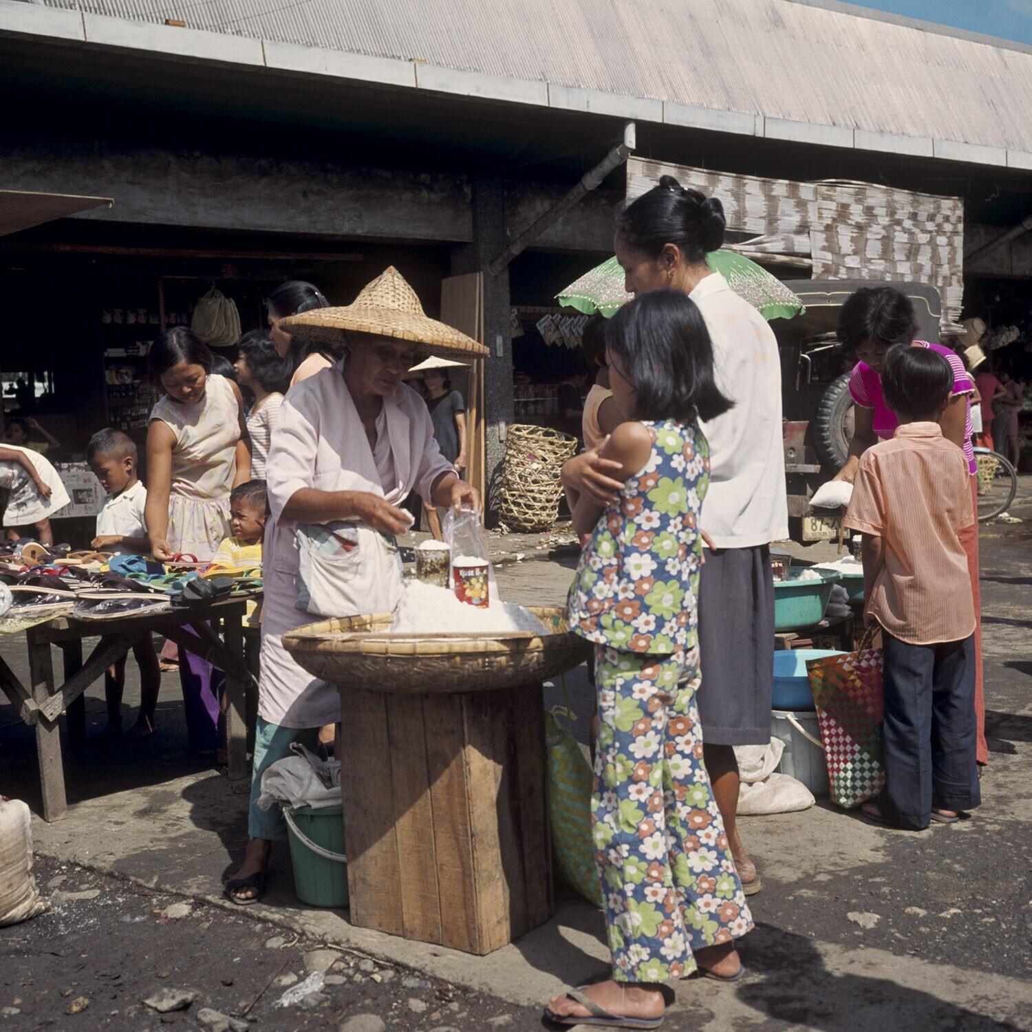Verkoopster op de centrale markt van Butuan City, Mi...