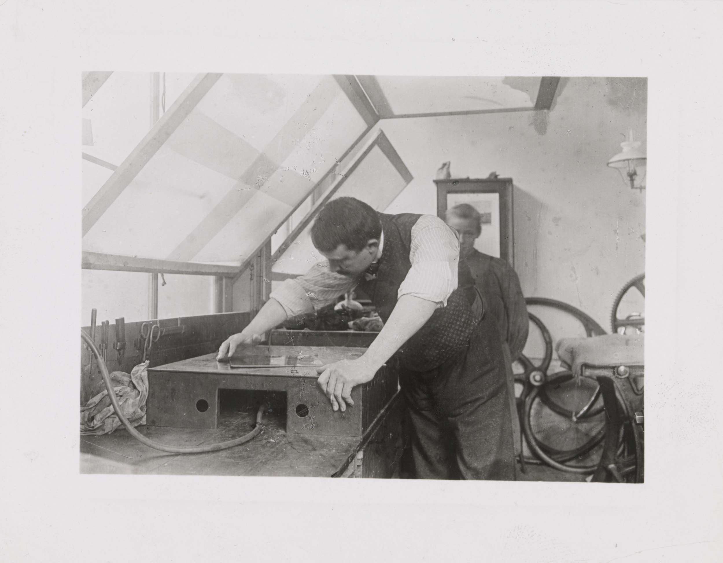 Fotoreproductie van het beeldhouwwerk De Beeldhouwku...