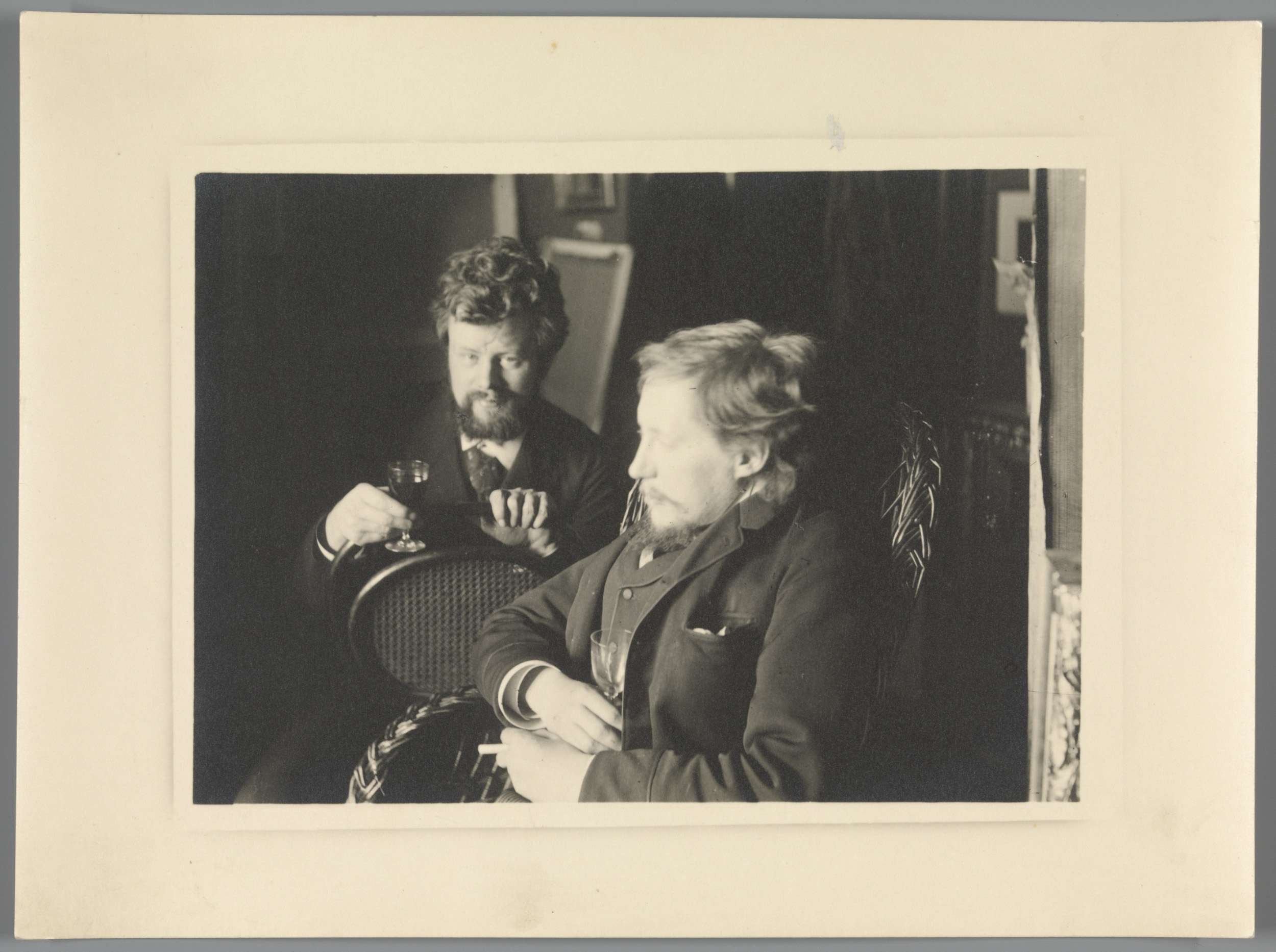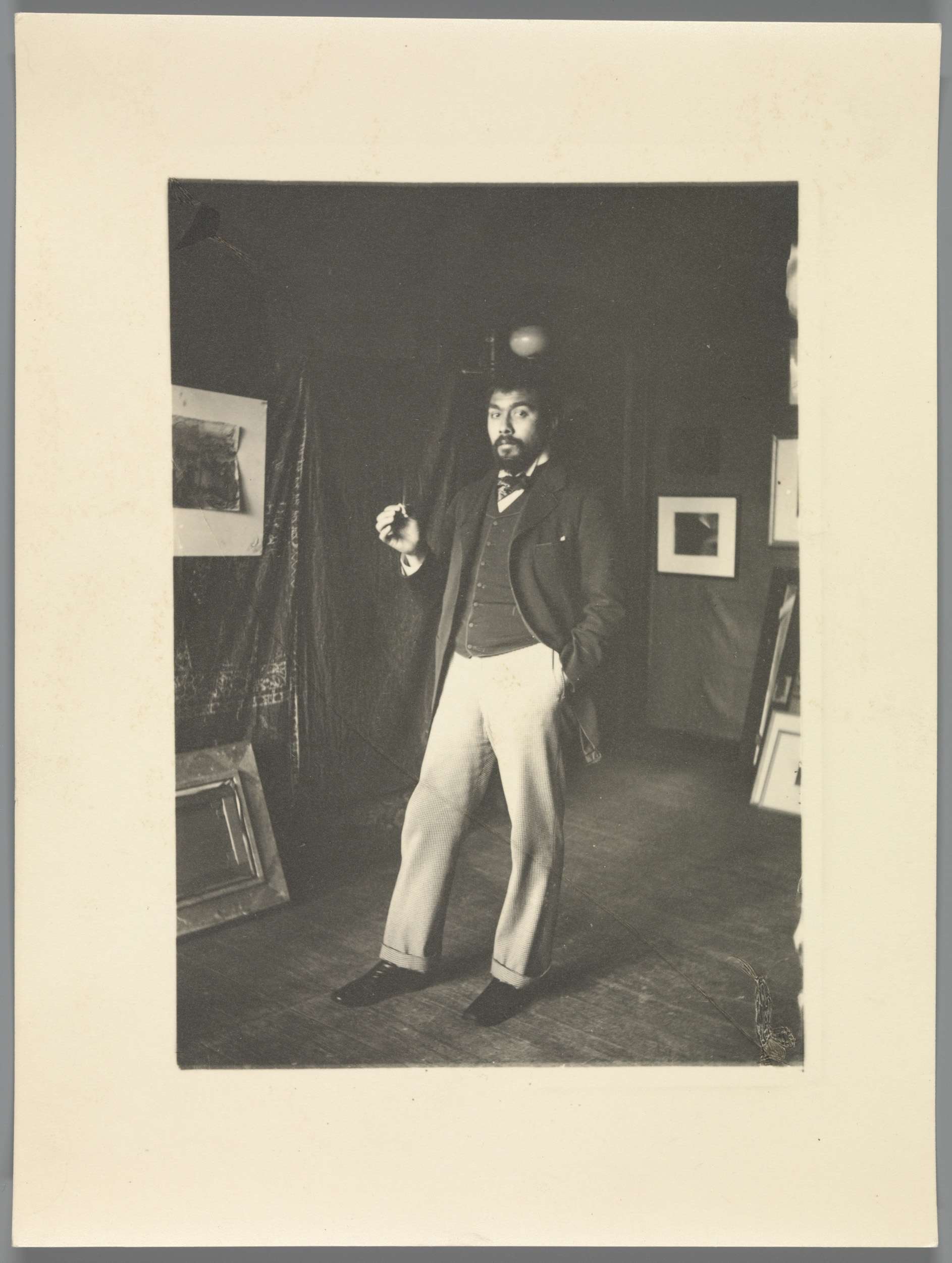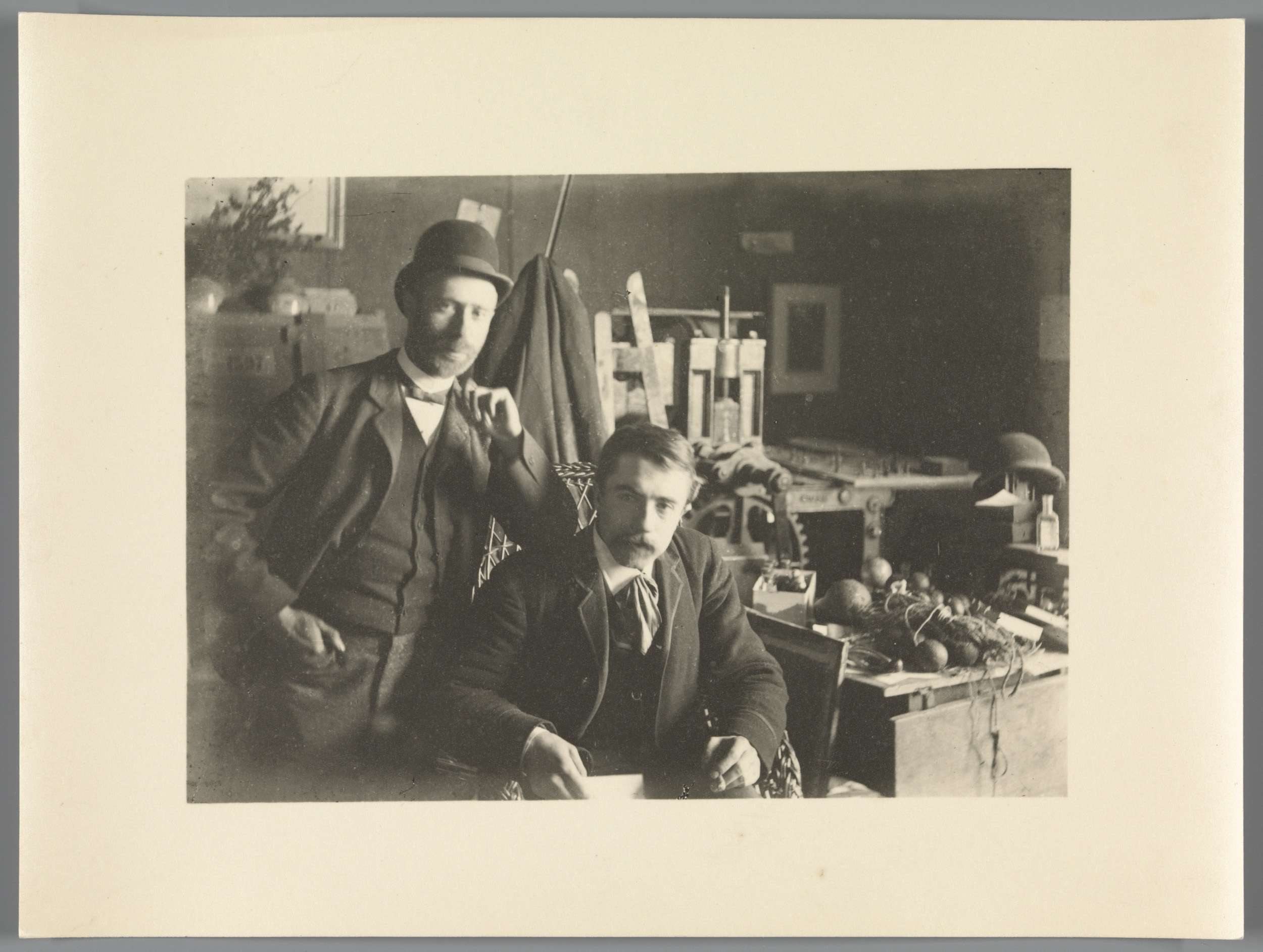 Fotoreproductie van het beeldhouwwerk De Schilderkun...