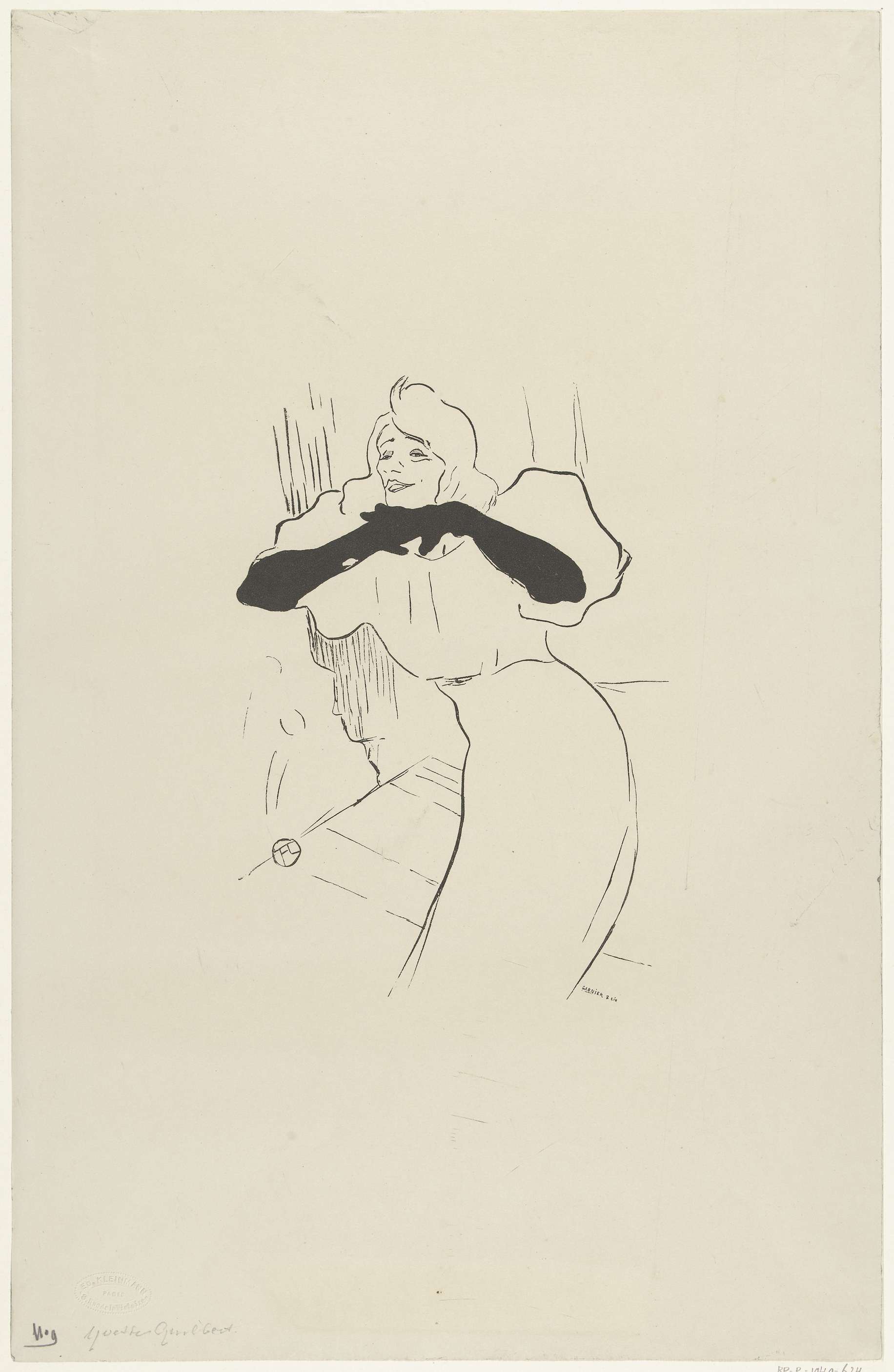 Portret van actrice Yvette Guilbert bij haar optrede...