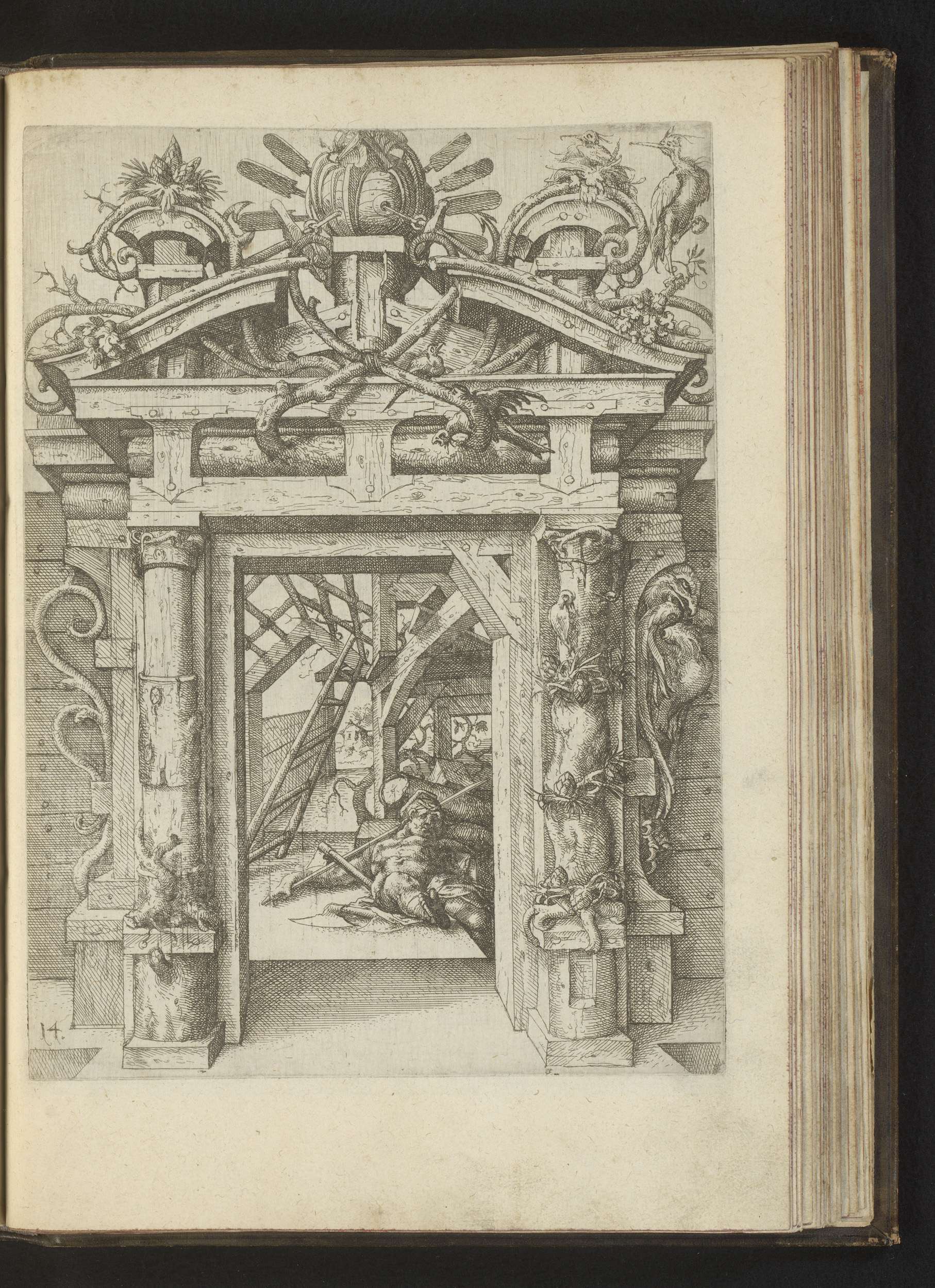 Portaal gedecoreerd met kanonnen, wapentrofeeën en e...