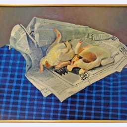Stilleven met haantjes op krant