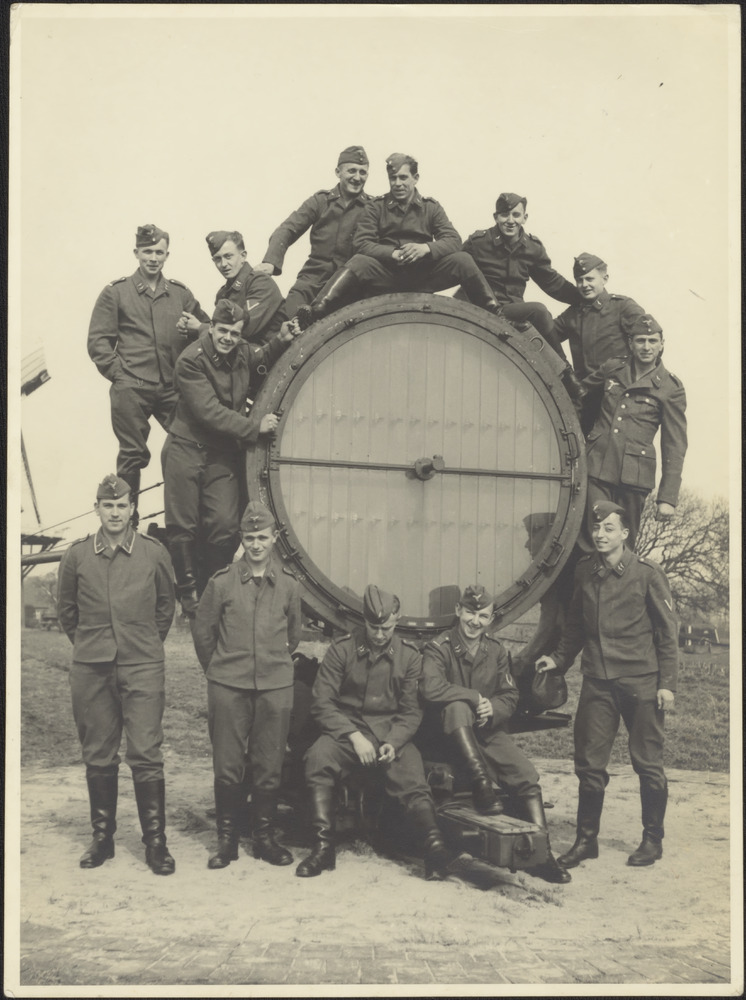 Een groep Luftwaffe soldaten poseert op en om een 15...
