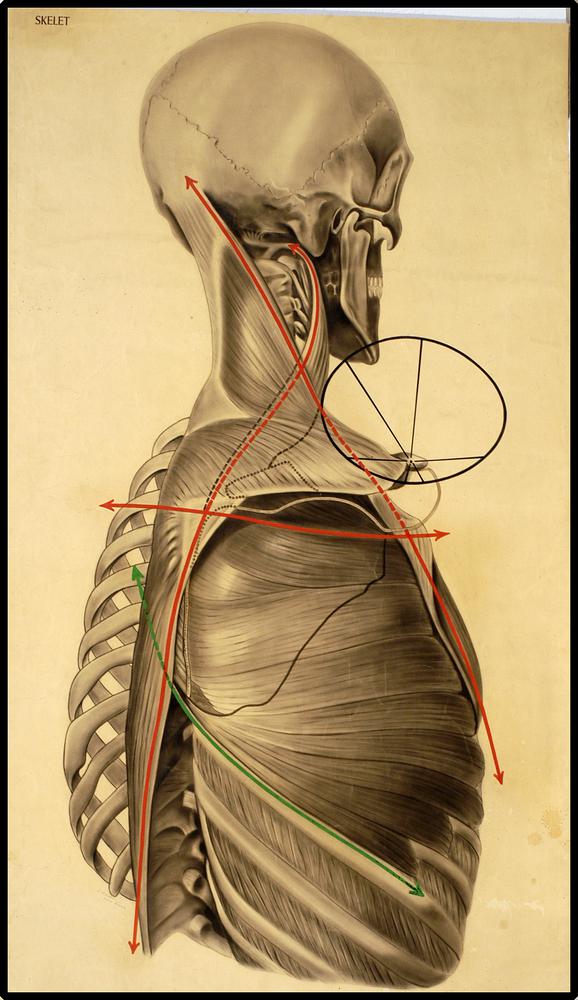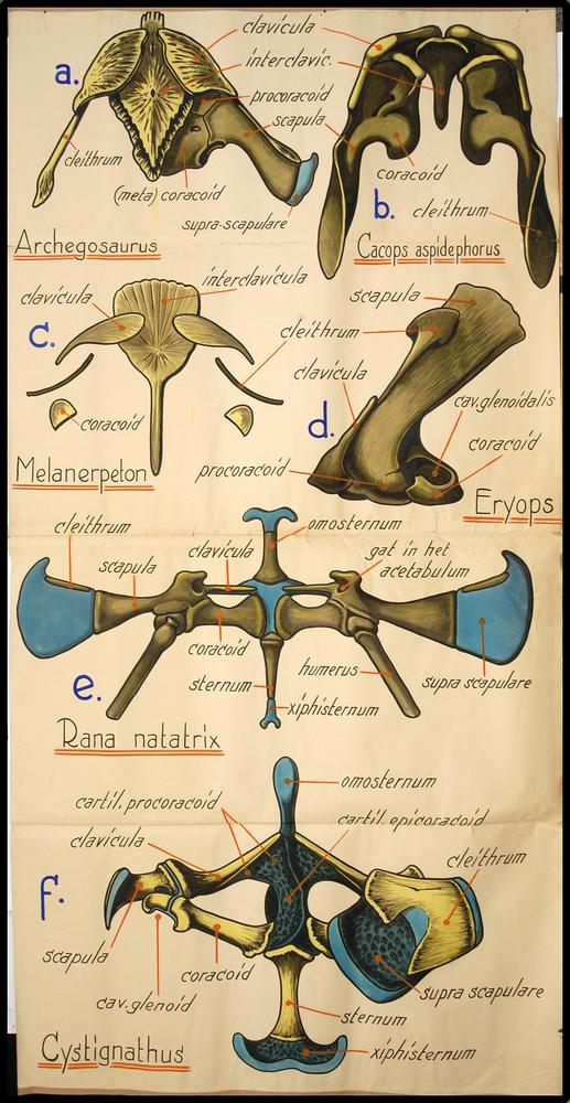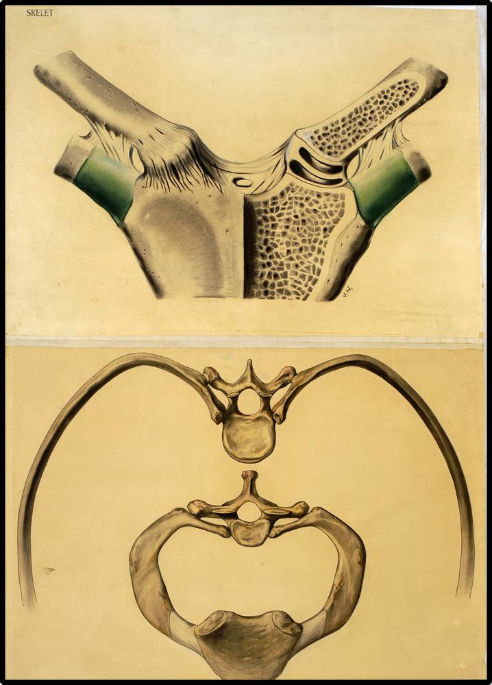 Onderwijsplaat met o.m. wervelkolom, ribben, bekken