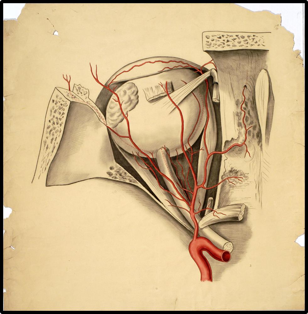 antomie van het oog in orbita incl bloedvoorziening