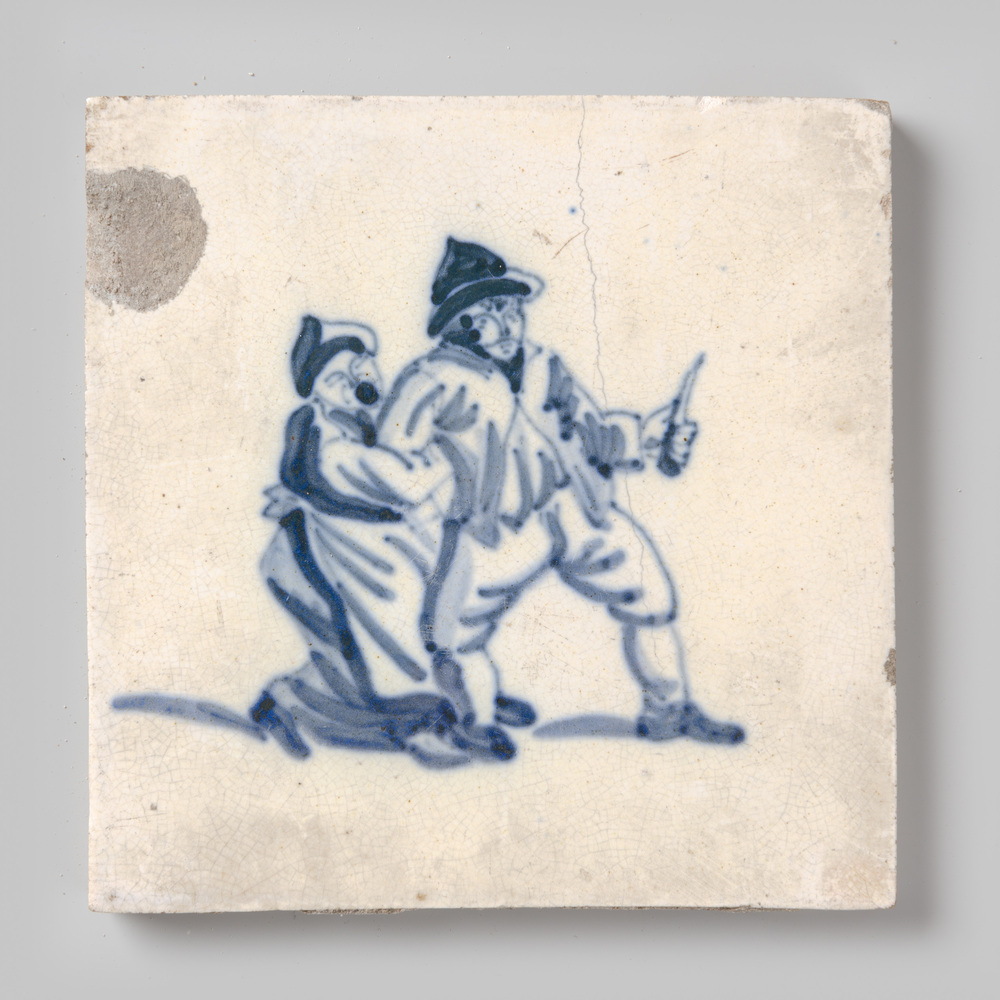 tegel van aardewerk met tinglazuur, voorstellende: h...
